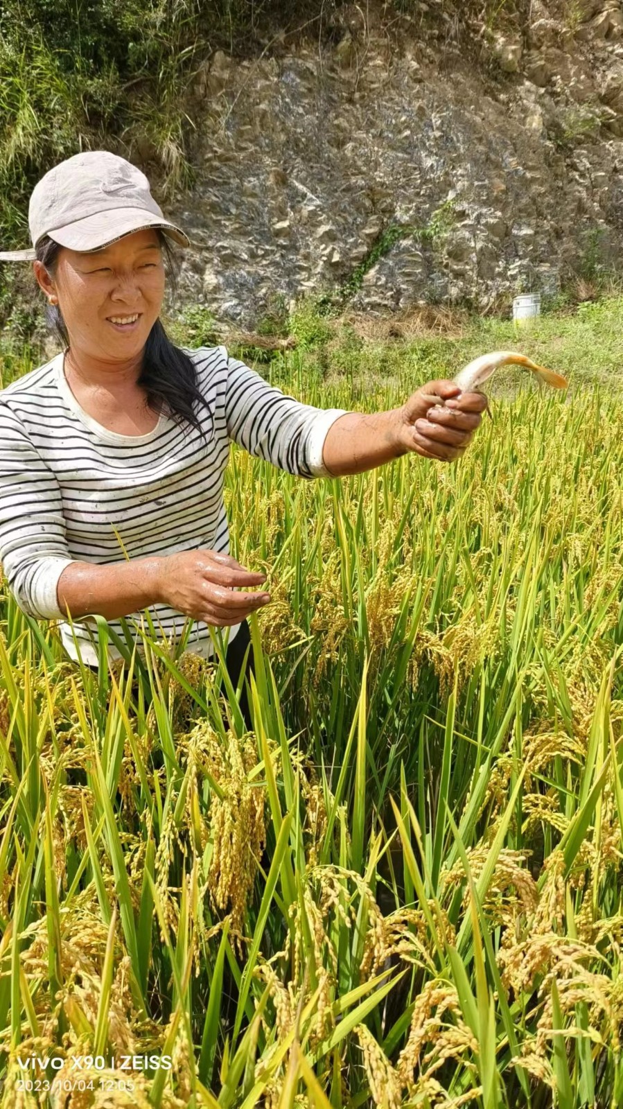 “田中种稻、 稻下养鱼”。金秋时节,金灿灿的稻田里,一条条鱼儿在稻下穿梭,村民们相互配合,放水、收稻、抓鱼等,脸上洋溢着丰收的喜悦。10月9日上午,保和镇兽医站到拉河柱村和高泉村开展稻田养鱼测产计量。