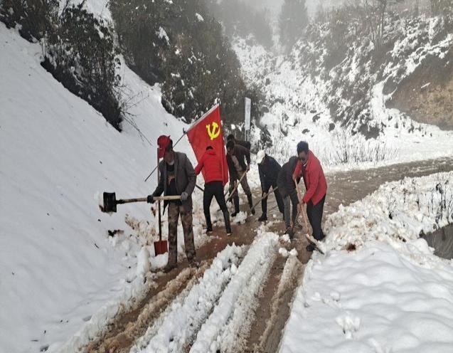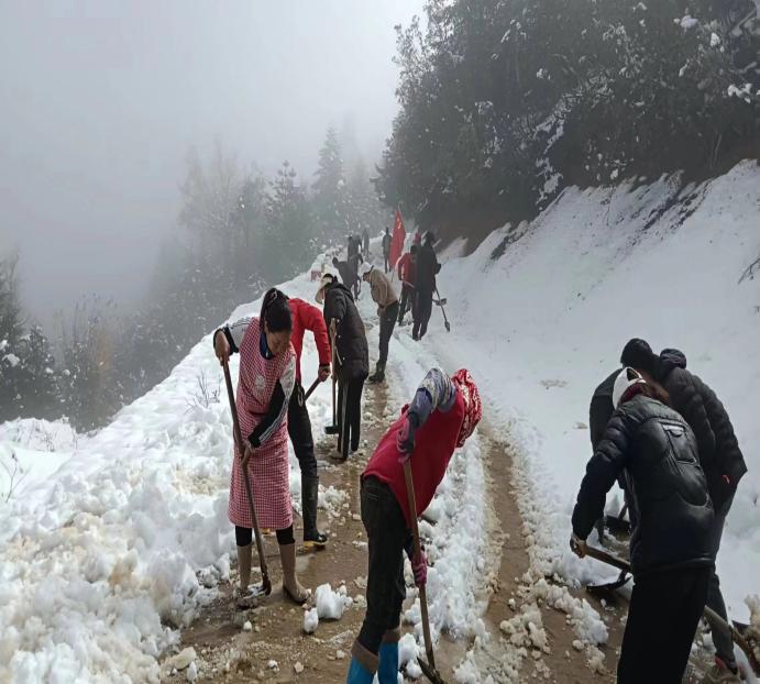 2023年11月18日,一场突如其来的降雪,打破了腊八底村的宁静,为切实做到保通畅、保安全、保民生,镇党委要求腊八底村第一时间排查上报灾情,第一时间发动党员群众,确保村组道路畅通。经排查,白岩子组的通组路积雪严重,急需清雪清障处理,存在十分严重的安全隐患。