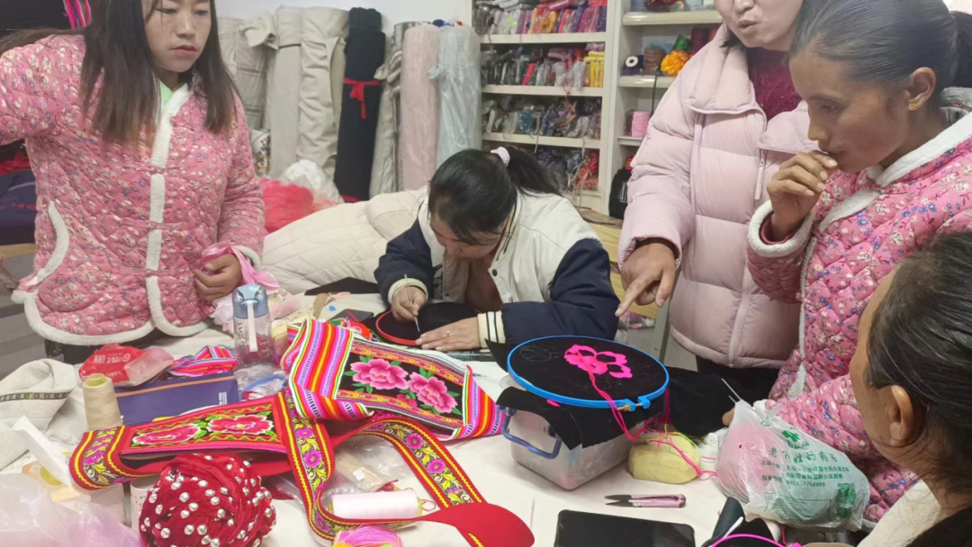 现场教学时,老师向学员们展示了非遗工坊近期的刺绣作品和织锦作品,同时对傈僳族刺绣的种类、色彩搭配、刺绣针法等知识进行了详细讲解及现场演示。工坊为学员们免费发放了织线,大家团团围坐,手里银针翻转,根根丝线回环往复,在老师的耐心指导下逐渐掌握了“数纱挑线”“看图挑花”等傈绣的基础针法,通过一针一线,把自己对美好生活美好向往绣在了精美的绣件上。