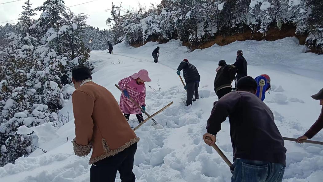 连续数日的降雪,封住了腊八底村白岩子彝族村寨通往外面的路,阻挡了群众的出行,特别是对于组内34名县内返校的学子和家长们来说是件突如其来的揪心事和难心事。灾情就是命令,村党总支在接到村民小组汇报后及时与镇党委政府汇报对接,为学生开学保驾护航。针对雪灾,保和镇腊八底村重点开展了:一是党支部组织全组有劳动力的党员、群众40余人铲雪清雪。二是积极做好群众思想工作,稳定好学生和家长的情绪。三是镇党委政府组织机械进行清理。由于积雪达60公分以上且一直降雪,无法马上清理,只能由挖机开路,学生和家长步行至无积雪地段再乘车返校,腊八底村34名学生均按时返校。为了家长能在周末顺利接送学生,腊八底村持续针对道路的积雪进行全面清理,确保了白岩子组群众的出行。