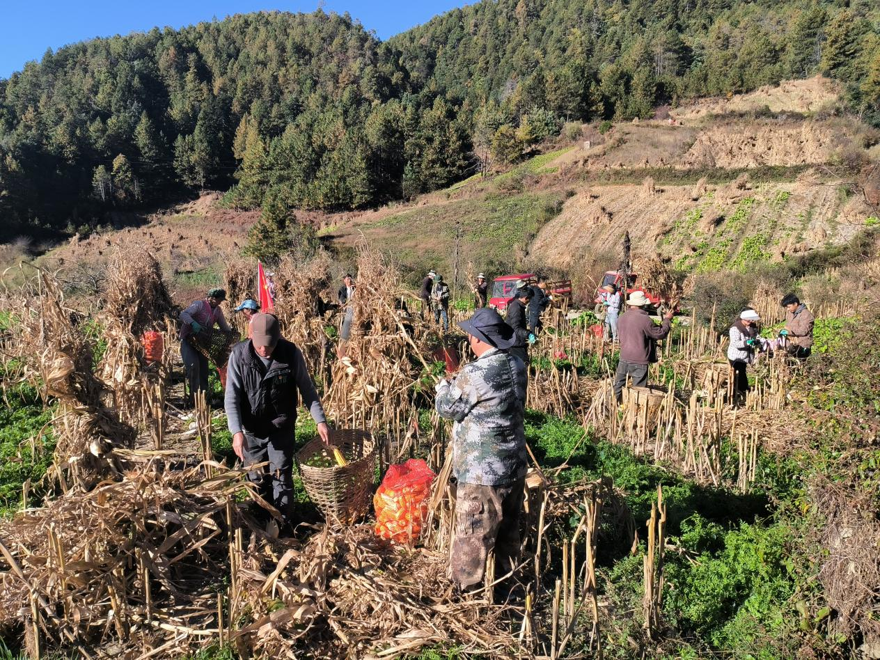 当前正值玉米丰收的黄金季节,为确保辖区劳动困难家庭农户能够及时收获玉米,避免因缺乏劳动力而影响收成,腊八底村党总支迅速组织村“两委”成员、驻村工作队、广大党员及部分热心群众,共同开展了一场以“携手相助,共享丰收”为主题的助农收玉米活动。