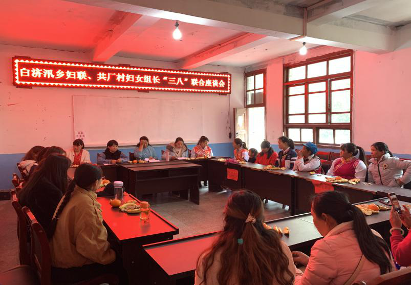 “一鼓轻雷惊蛰后,细筛微雨落梅天”,绵绵细雨并未阻挡妇女同胞们的热情,她们穿着节日盛装庆祝着这个只属于她们的节日。早上9点,全体人员在村委会会议室中召开了“巾帼心向党 奋斗新征程”妇女工作座谈会,共叙巾帼佳话,畅谈人生理想。乡妇联主席首先向妇女同胞们表达了节日问候并提到,过去的2020年,全乡妇女同胞以“巾帼不让须眉”的气概,在脱贫攻坚的征途上、在社会治理的最基层、在优良家风的传承中做出了巨大贡献,特别是在2020年抗击新冠肺炎疫情特殊战“疫”中,妇女同胞们冲锋在前,不负使命,为打赢疫情防控阻击战贡献了巾帼力量。希望妇女同胞们在新的一年中继续发扬“自尊、自信、自立、自强”的精神,团结奋斗、拼搏进取,展现奋斗新姿态。座谈会上,乡组织委员还带领大家共同学习了“燃灯校长”、“时代楷模”张桂梅的优秀事迹,号召大家做心怀家国、赓续美德的幸福传承者。