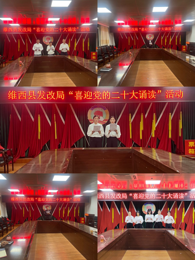 开展“喜迎党的二十大诵读”比赛。10月13日晚上,发改局组织开展“喜迎党的二十大诵读”比赛,本次比赛共有5个由各个股室组建的参赛队参赛,诵读内容紧紧围绕“喜迎党的二十大”主题,参赛队伍以昂扬的精神诵读了《请党放心,强国有我》、《我心向党》、《红色》、《相信未来》等红色经典作品。通过激烈的角逐,最终评选出三个参赛队为此次比赛前三名。