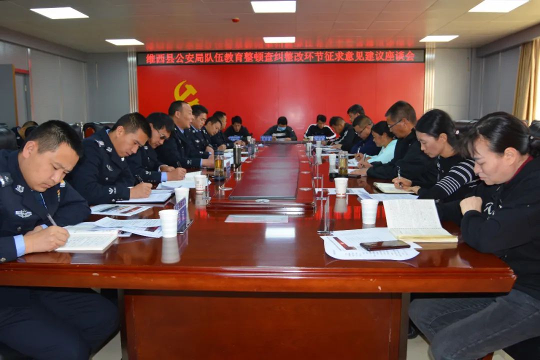 为扎实推进政法队伍教育整顿查纠整改环节走深走实,广泛听取群众所思所想所盼,解决群众存在的实际问题和困难,4月25日上午,维西县公安局召开队伍教育整顿查纠整改环节征求意见建议座谈会,维西县人民政府副县长、公安局党委书记、局长、县公安局教育整顿领导小组组长扎史都吉同志介绍了学习教育环节工作成效,通报了顽瘴痼疾整治内容和主要措施,公安局党委主要分管领导反馈了教育整顿第一阶段座谈会征求意见建议的整改落实情况。