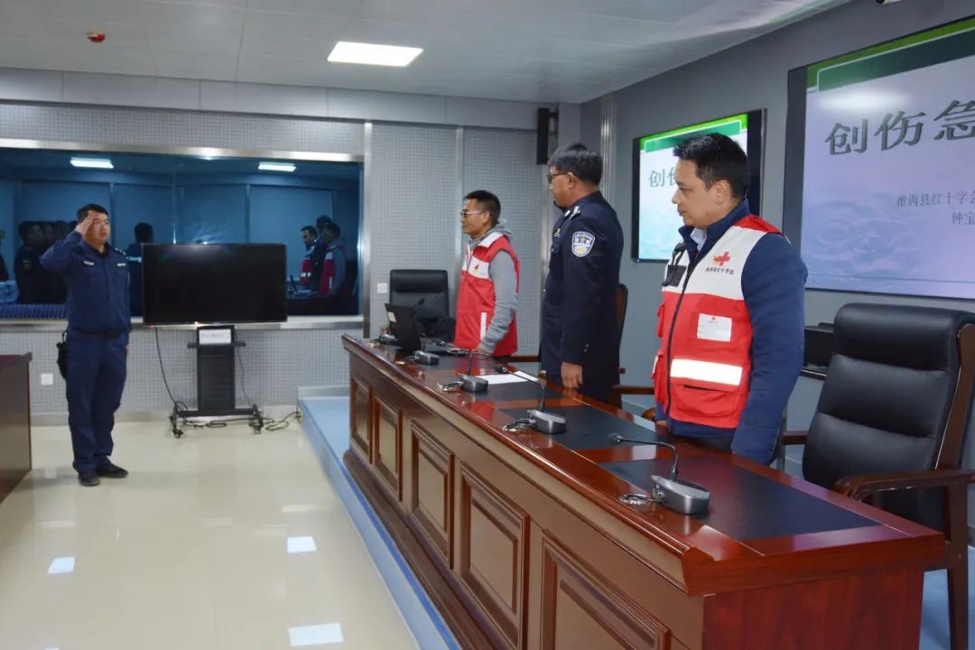 会上,维西县红十字会常务副会长李军同志表示,在维西县公安局切身感受到维西公安这支队伍的纪律性、专业性,对维西公安为维护社会稳定做出的奉献表达了感谢和敬意,希望以后能为大家提供更多的帮助和服务,同时介绍了公安民警掌握急救知识的重要性,会上还为全局参训民警赠送了70个急救包。