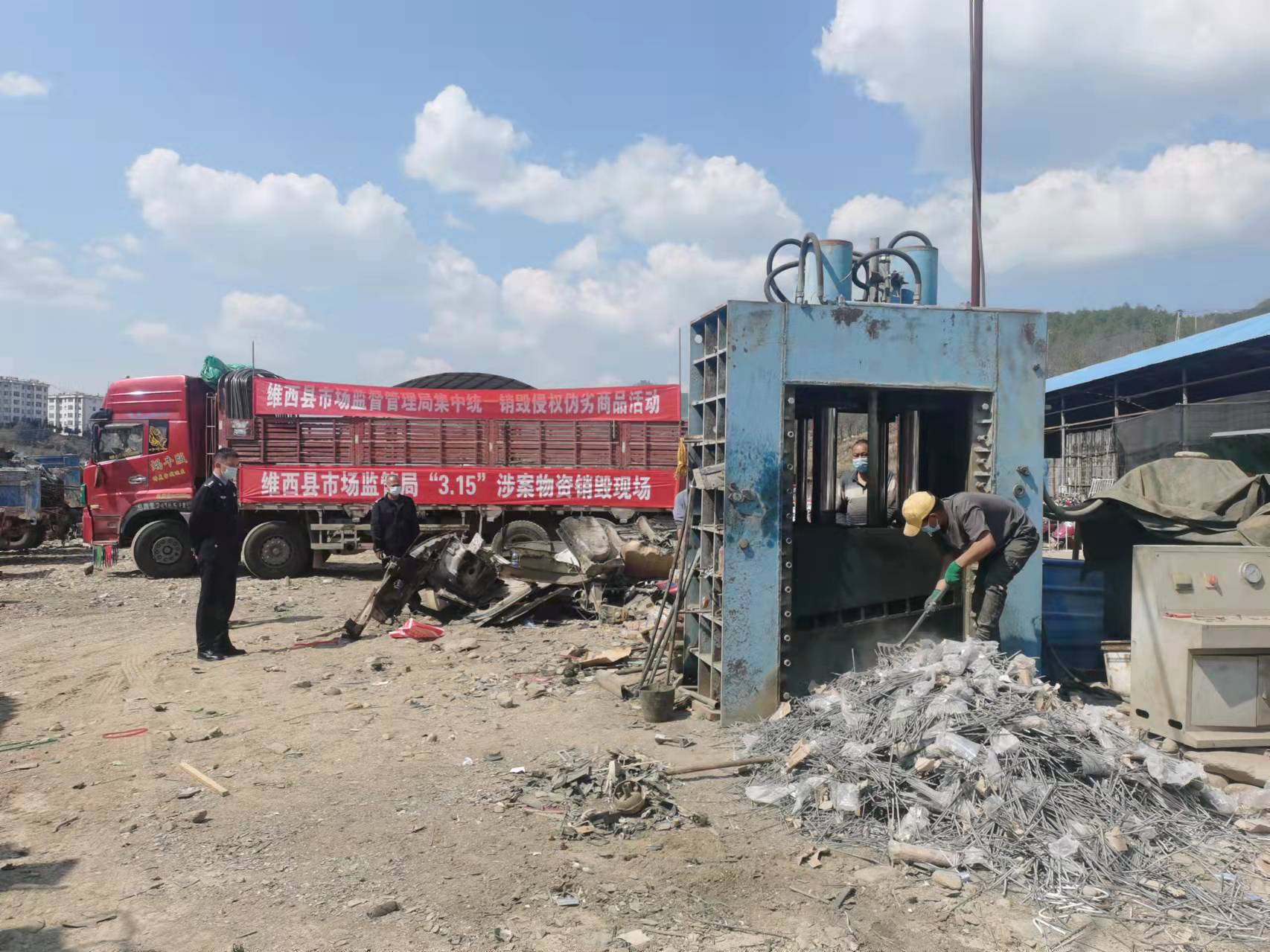 为全面落实全国打击侵犯知识产权和制售假冒伪劣商品行动,营造良好营商环境,维西县公安局森林警察大队持续开展“2022昆仑行动”。3月15日大队教导员携治安中队民警协同市场监督管理局到汽车报废厂开展涉案物品销毁,到菜市场、商店超市进行食品安全综合检查活动,防止侵权假冒商品再次流入市场。出动警力3人次,车辆1台次。