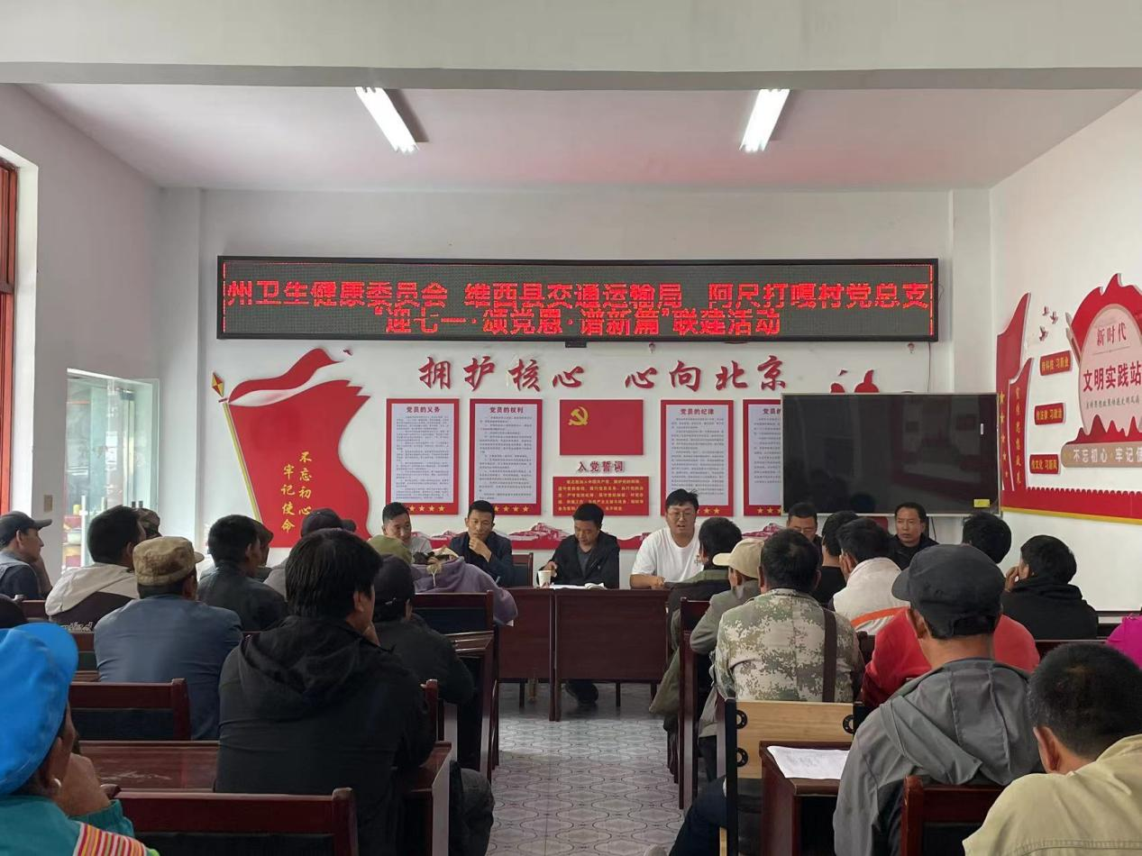 7月3日,迪庆州卫生健康委机关支部、维西县交通运输局党支部、维西县聚缘公司党支部、阿尺打嘎村党总支共同开展了庆“七一”结对联建活动。