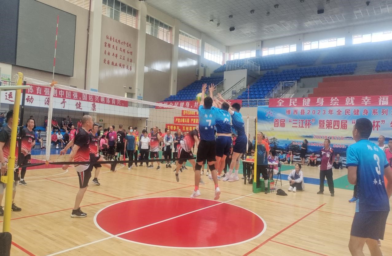 近年来,维西县教育体育局充分结合我县实际,利用赛事搭台,扶持、培养运动协会相结合的方法,全面推进我县全民健身运动。今年,按照《维西县2023年全民健身计划》,经过充分调研,维西县举办了首届“三江杯”暨第四届“职工杯”气排球比赛。共有来自怒江、丽江、德宏、楚雄以及迪庆的65支球队和9支职工组球队报名参加了比赛,参加比赛的球员最小年龄17岁,最大的64岁。本次比赛融合了“三江杯”和“职工杯”,比赛自7月27日起至7月30日共4天,比赛场次200场。从赛制的设置,参赛的人员结构,比赛的规模都充分达到了全民健身,全民参与的效果。