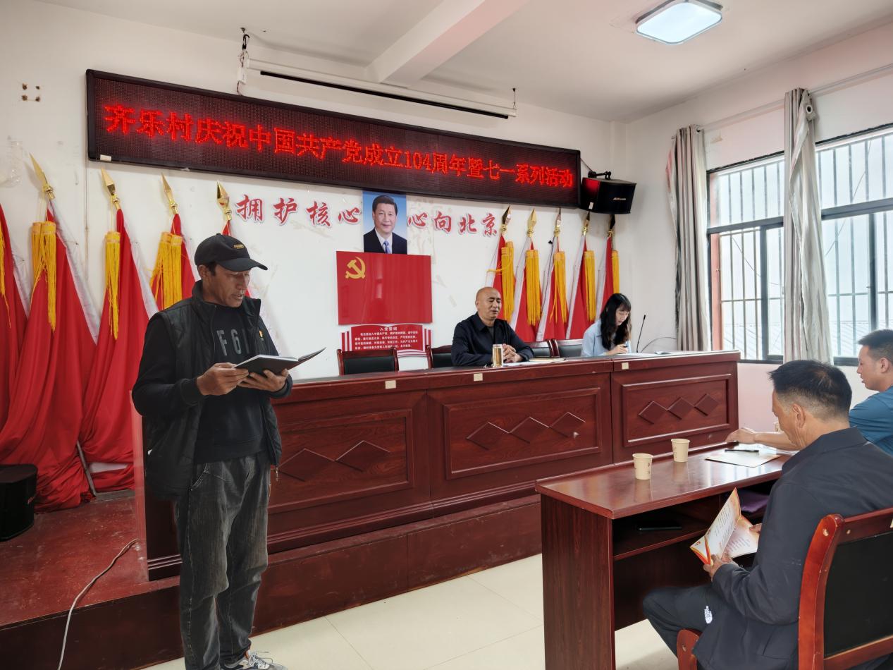 为庆祝中国共产党成立104周年,齐乐村于7月4日开展了庆“七一”主题活动。迪庆州政府研究室党组书记、主任及党组成员,村“两委”、驻村工作队、村各支部全体党员、群众共计100余人参加了活动。