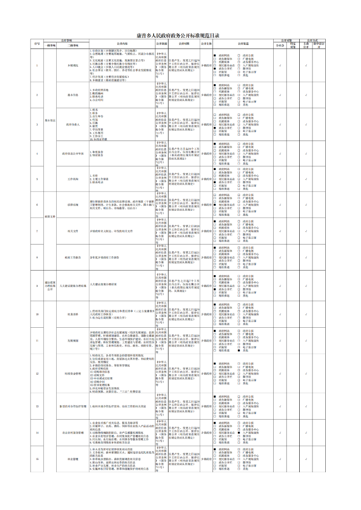 康普乡人民政府政务公开标准规范目录