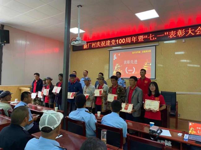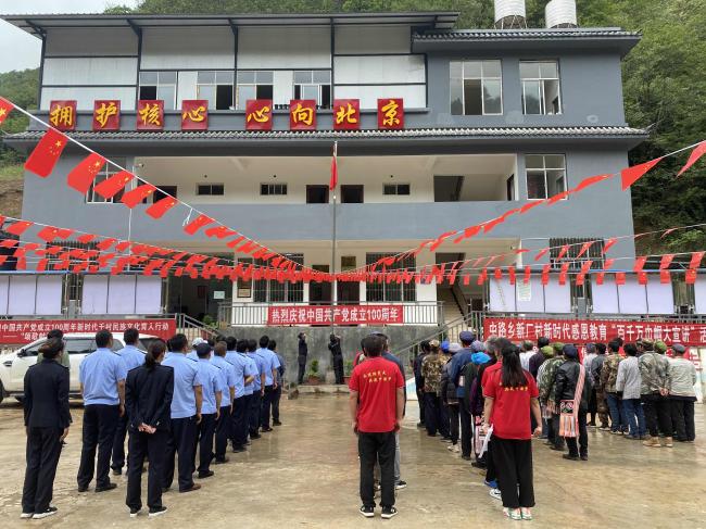 7月2日:与中路乡新厂村开展支部联建活动,共庆华诞。升国旗唱国歌;与会人员齐唱《没有共产党就没有新中国》;全体党员重温入党誓词。
