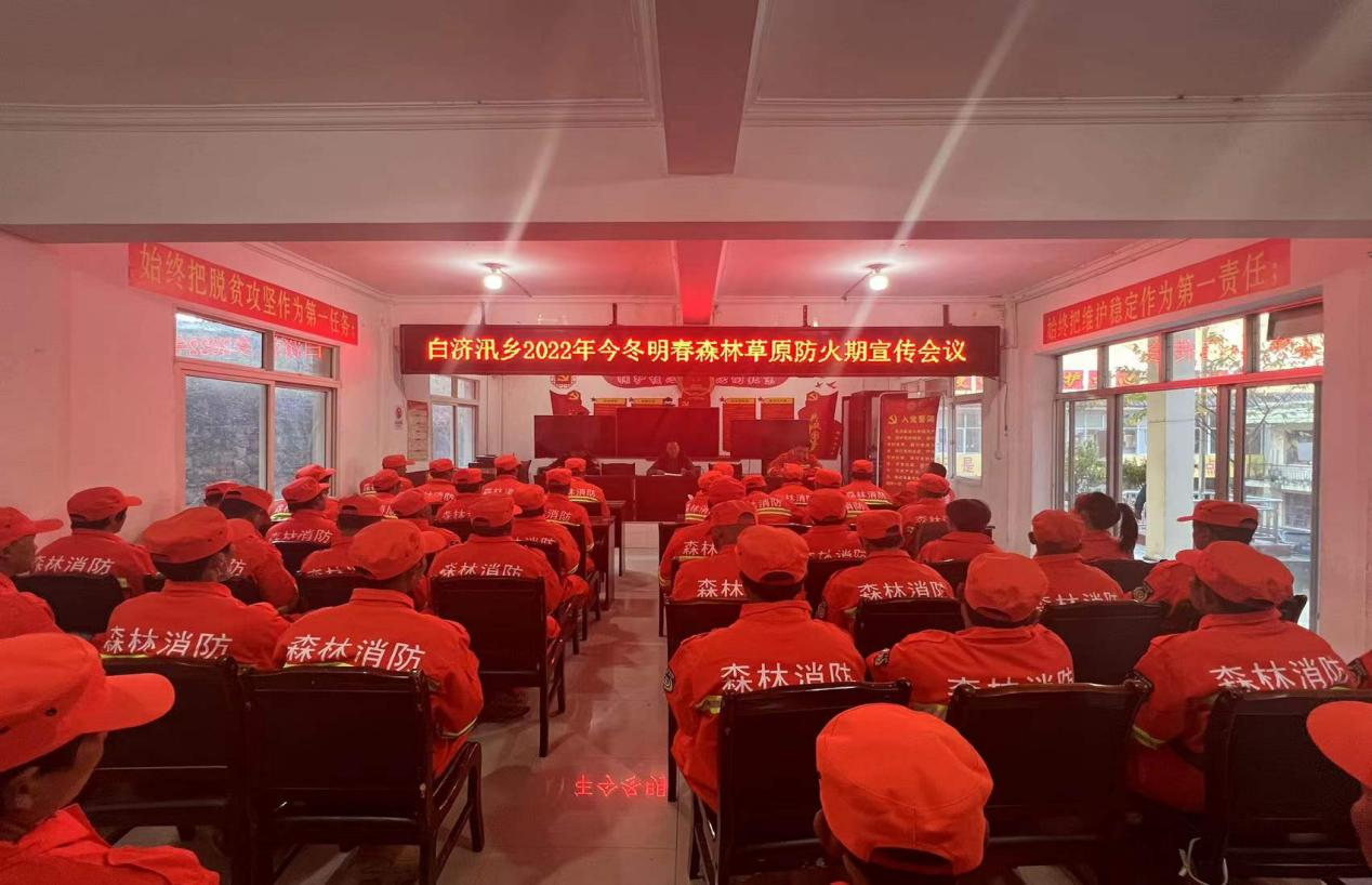 为切实做好冬季森林防火工作,将人民群众安全放在心上,将责任扛在肩上,2021年12月17日,白济汛乡组织召开2022年今冬明春森林草原防火期宣传会议,乡林草中心、乡林场及各村护林员50余人参加会议,会议由乡人民政府王副乡长主持。