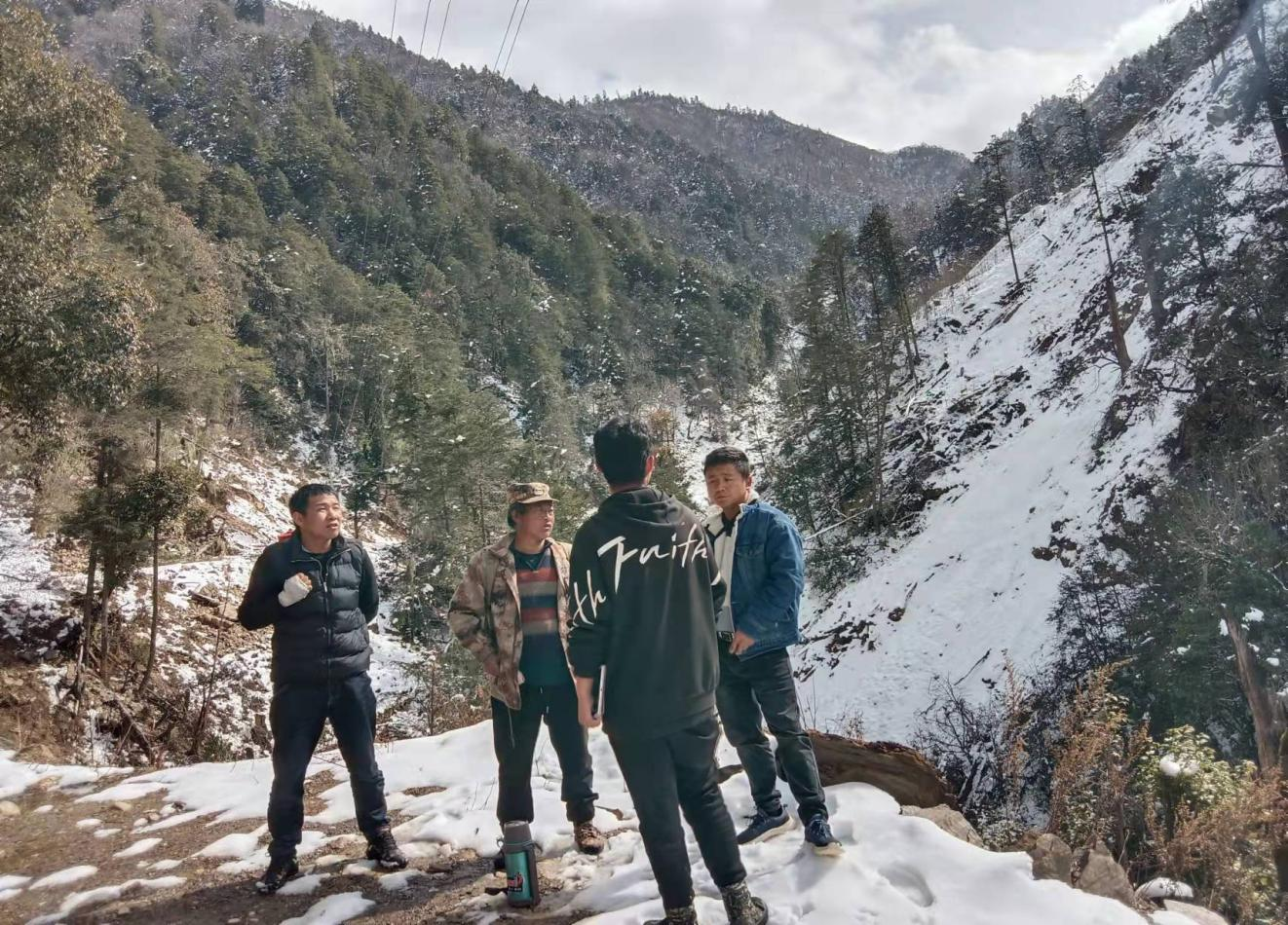 由于近期我县遭遇大雪天气,全县境内都有降雪,给外业调查造成了很不利的影响。经过讨论研究,工作组决定筛选在雪线的点位开展工作,首先攻克永春乡庆福村的大样地调查。