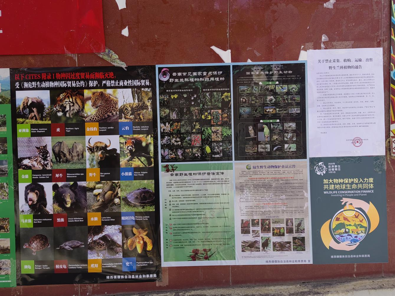2025年3月3日,维西县林业和草原局围绕"加大物种保护投入力度,共建地球生命共同体"主题,组织开展了为期三天的第十二个"世界野生动植物日"系列宣传活动。