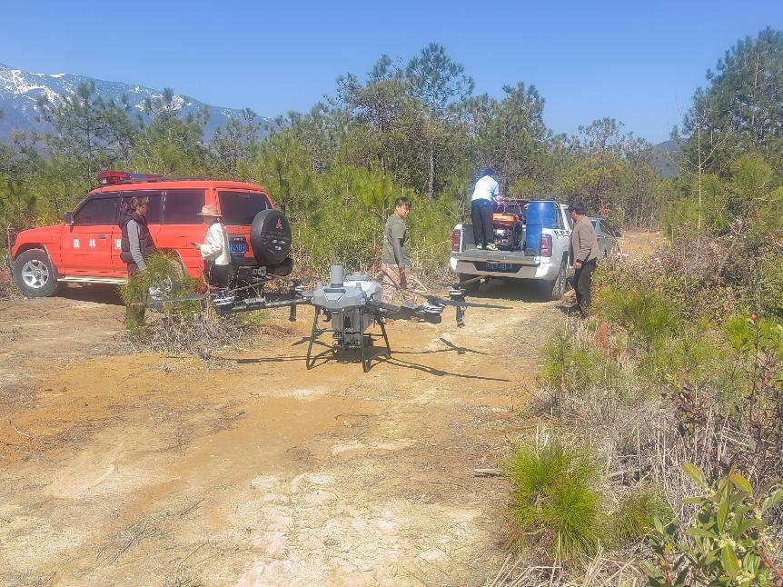 当前,维西县永春乡拖枝村、塔城镇海尼村及攀天阁乡美洛村等重点林区已出现病害流行态势。县林业和草原局依托智能监测网络,抓住4月上旬最佳防治窗口期,启动无人机飞防应急机制。截至目前,已完成云南松重点林区2000余亩的二次精准防治作业,构建起立体化防控体系。