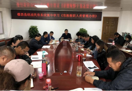 为坚持和发展中国特色社会主义宗教理论,坚持以“导”的态度对待宗教,构建积极健康的宗教关系,积极推进依法管理宗教事务进程。近日,维西县统战民宗系统集中学习《宗教教职人员管理办法》。县委常委、统战部长蒋智添出席。