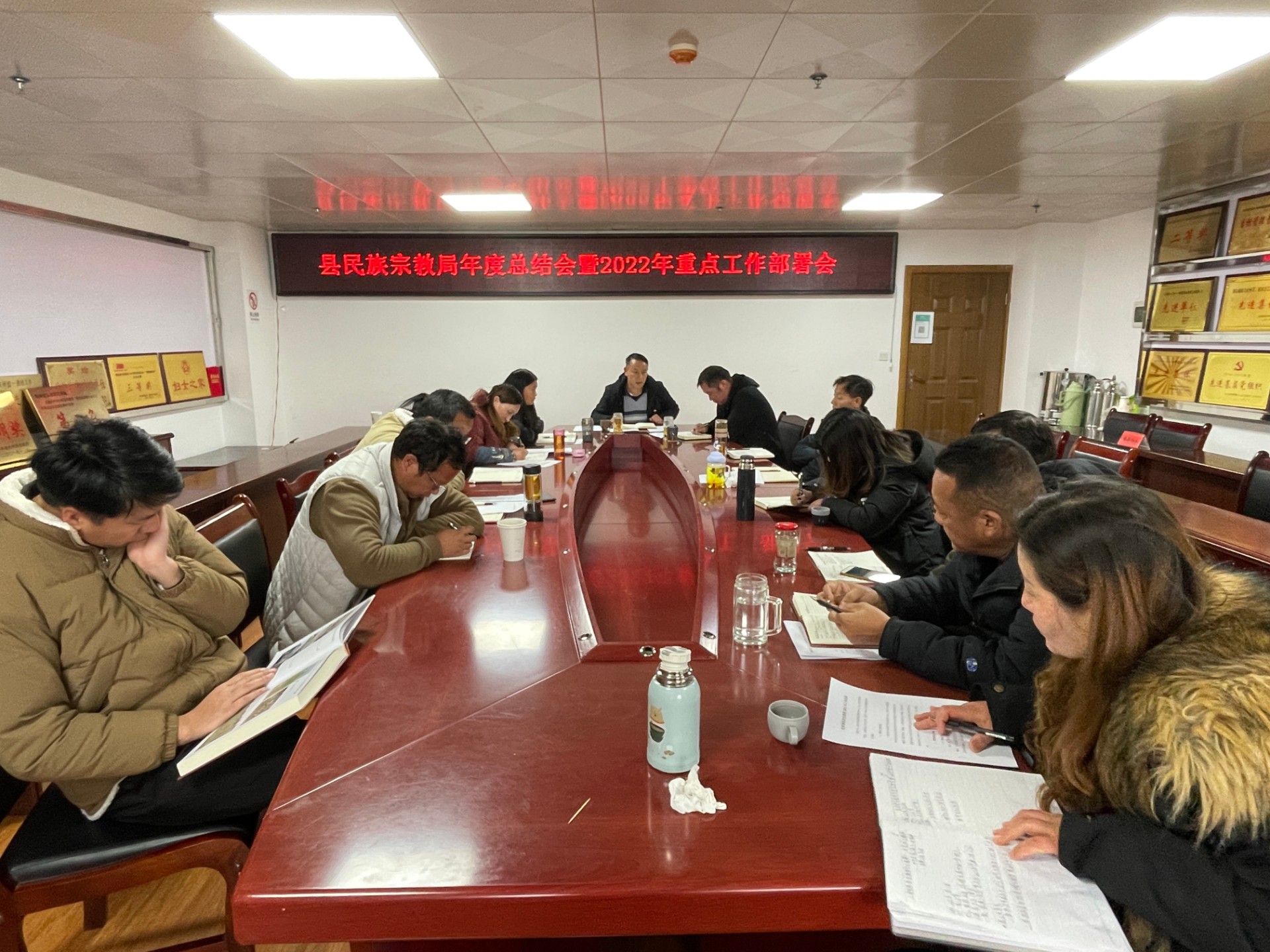 2月22日上午,县民族宗教局组织全体干部职工召开了部门2021年度总结会议暨2022年重点工作部署会。局长余海军主持会议。