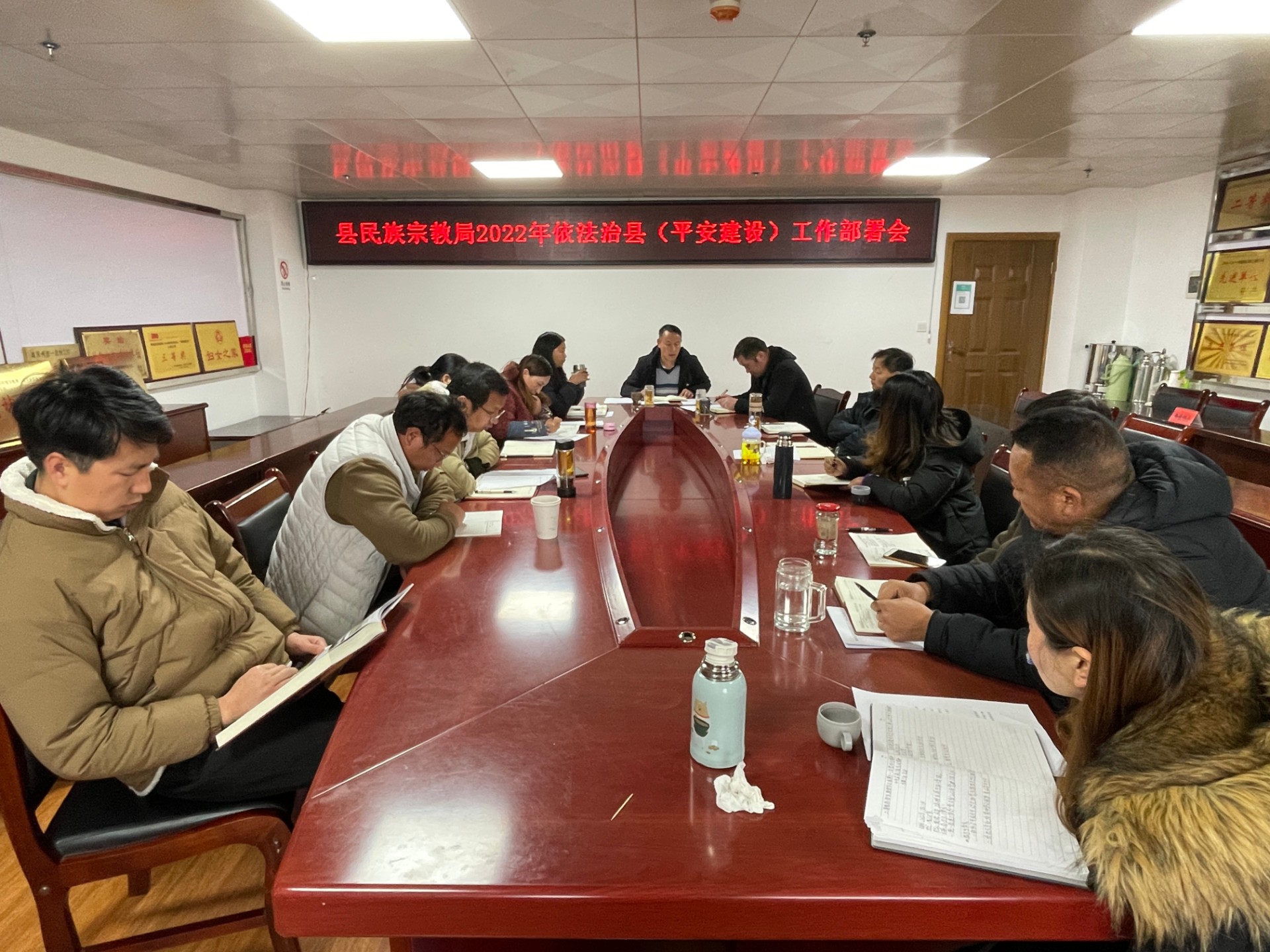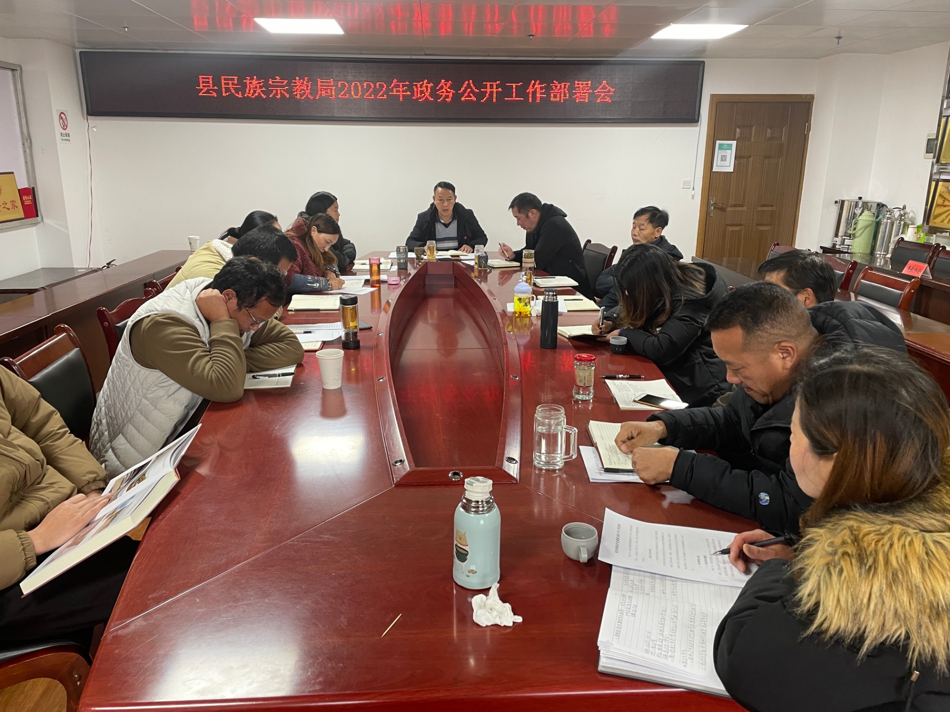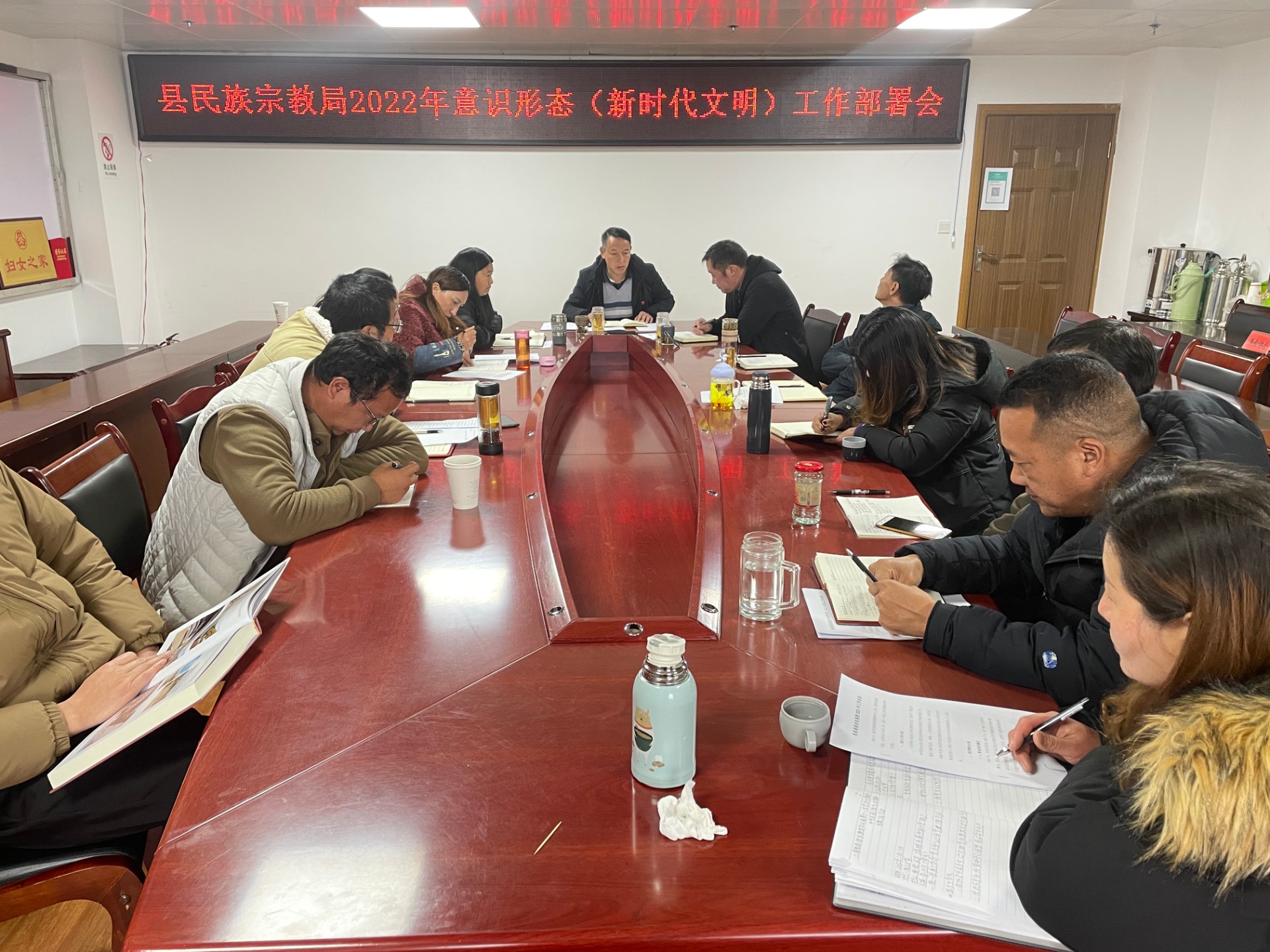 局长余海军对部门2022年工作要点作了安排部署。一是继续深入学习贯彻落实习近平总书记考察云南重要讲话、中央民族工作会议、全国宗教工作会议、中央第七次西藏工作座谈会、省委第三次涉藏工作会议、省委省政府迪庆现场办公会和州第九次、县十四次党代会精神,按照县委、县政府的统一部署,深入少数民族聚居地区、宗教活动场所持续广泛开展爱国主义、社会主义核心价值观、民族团结进步宣传教育活动,使“两个共同”“三个离不开”“五个认同”及中华民族共同体意识更加深入人心并逐渐成为人们的自觉行动。二是通过党政齐抓共管、精神家园共建、发展成果共享、和谐关系共创、民族事务共治、示范创建共促6项重点工程,深入开展全国民族团结进步示范县创建工作;推进铸牢中华民族共同体意识项目化、实体化、工程化,将年度“十百千万示范创建”工程、少数民族优秀传统文化保护传承项目、民族文化“双百”工程项目建设落实落地;积极探索推进城市民族管理工作,建立健全有利于构建互嵌式社会结构的体制机制,创造共居共学共事共乐的社会环境,为我县“十四五”期间创建成为全国民族团结进步示范县打牢基础。三是坚持以“导”的态度对待宗教,深入推进我国宗教中国化。加强宗教教职人员教育引导工作,不断加强宗教领域风险防控工作,系统性、规范性做好宗教法治管理工作,不断提升宗教工作规范化、制度化、法治化水平。四是进一步加强部门作风建设,维护部门利益,加强日常管理,团结一致,形成良好的部门工作氛围,力争取得更大的工作成绩。最后,就近期宗教领域“迎接党的二十大一学四抓三促进”专项活动作了安排,要求全力抓好宗教领域中央、省、州、县重要会议精神宣讲,三月驻寺维稳、矛盾纠纷排查化解、公开揭批教育、涉藏重点人员管控等工作。做好宗教活动场所消防、食品卫生、工程建设、外来人员管理、疫情防控等安全工作。