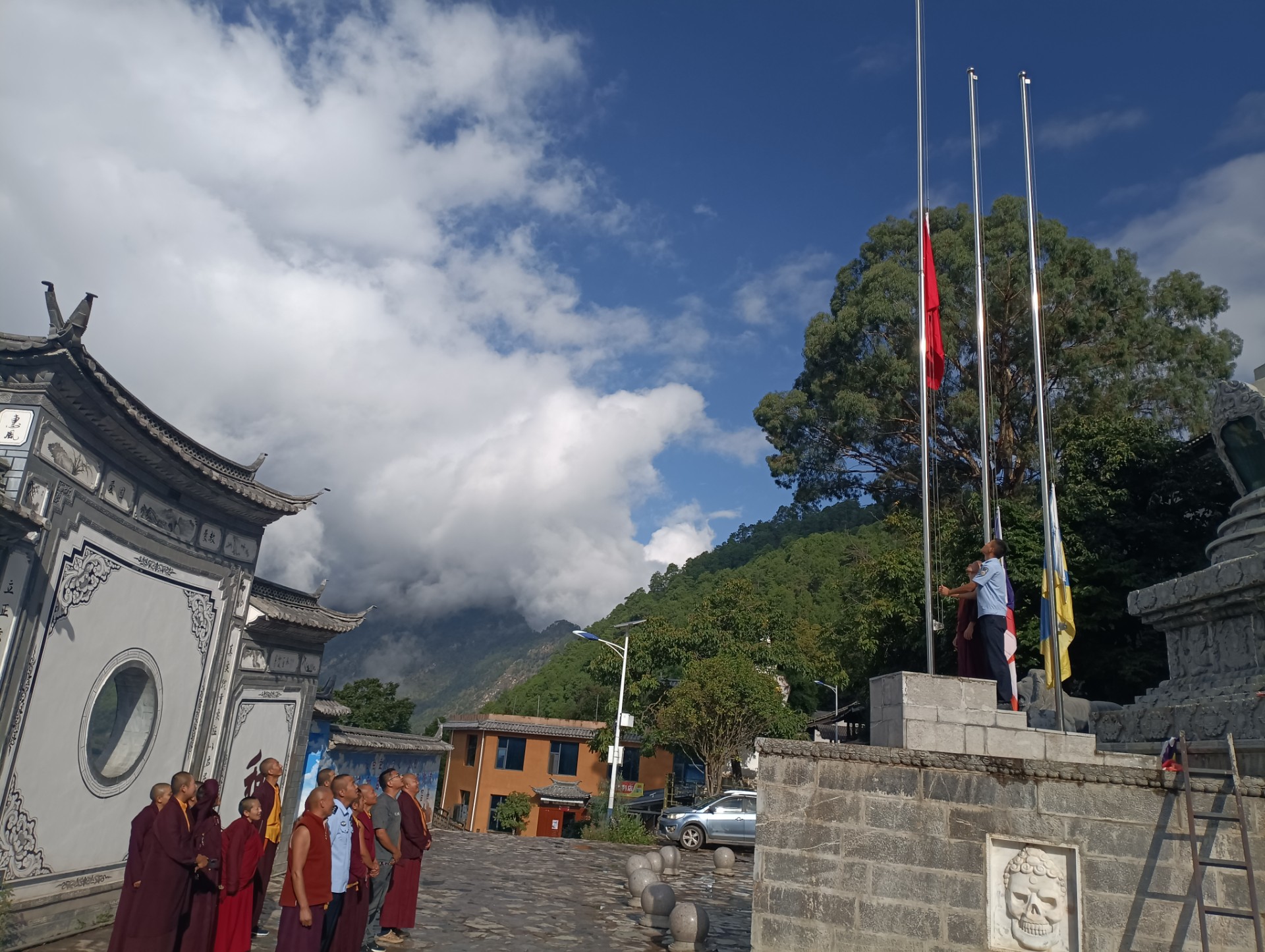 为热烈庆祝中华人民共和国成立74周年,10月1日上午,维西县各宗教活动场所积极组织信教群众开展升国旗仪式,向祖国母亲致以崇高的敬意,送上美好的祝福。