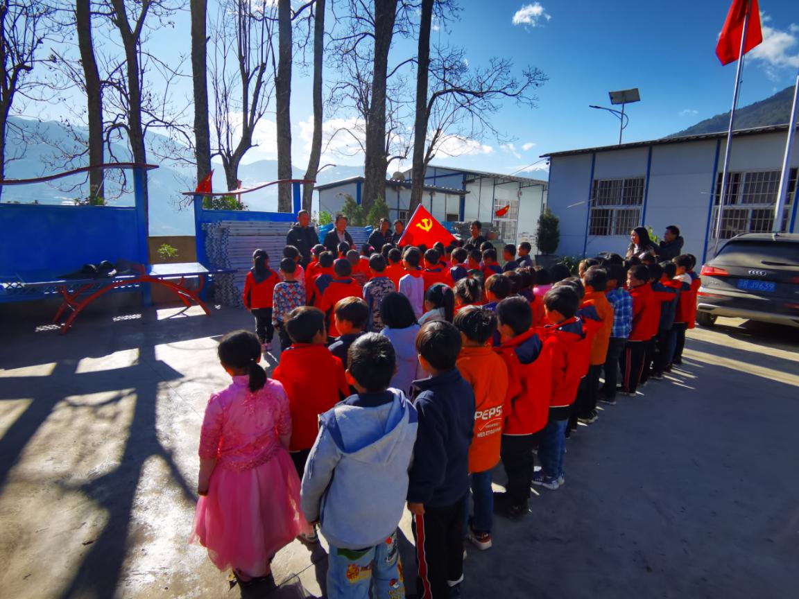在山加村,副局长木丽平带队向山加村幼儿园20名学生及山加村适龄儿童送去学习物资。