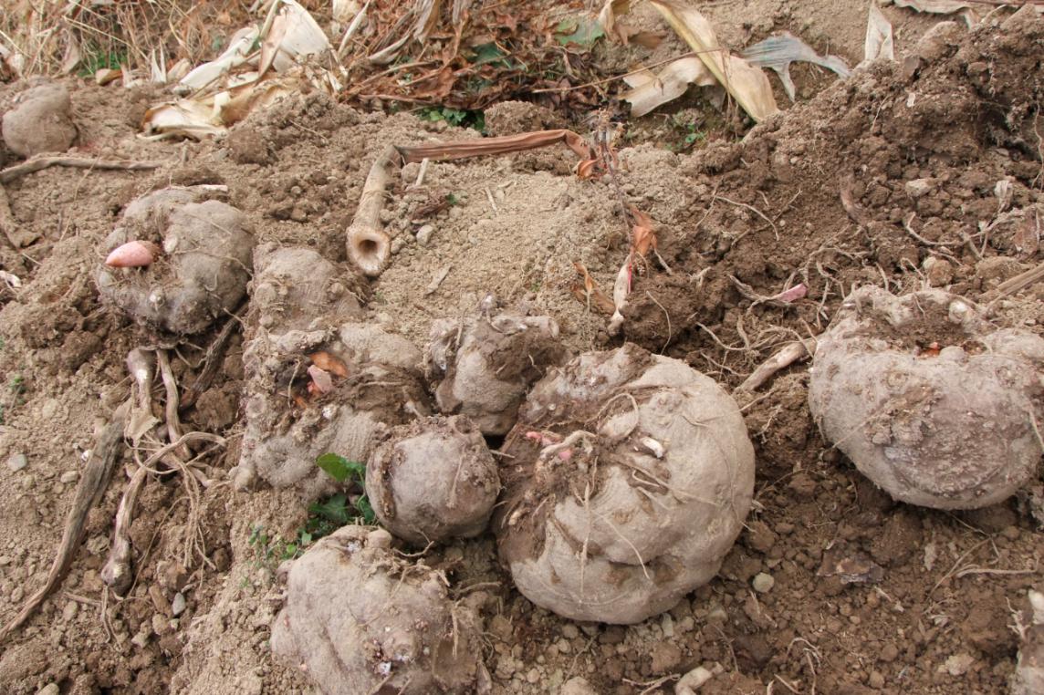 魔芋自然倒苗后一周即可采收,一般是在10月下旬至11月上旬挖收。但采收的最迟时期应是平均气温不低5℃以前。应选择晴天采挖。室内贮藏应注意保持室内温度8℃—10℃,空气湿度70%—80%,并尽量恒定,立春后温度可保持在12℃—20℃之间。