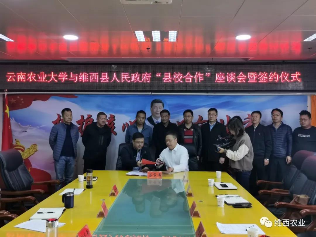 2021年3月21日,由云南农业大学副校长杨生超带队,云南农业大学“县校合作”专家组一行10人抵达维西,在行政中心6楼常务会议室与维西县人民政府签订“县校合作”框架协议并召开“县校合作”第一次座谈会。县人民政府办公室主任秦继禹主持会议,县委副书记、县长黄龙新,副县长段鸿勋,维西县“县校合作”办公室人员及维西县企业代表参加座谈会。