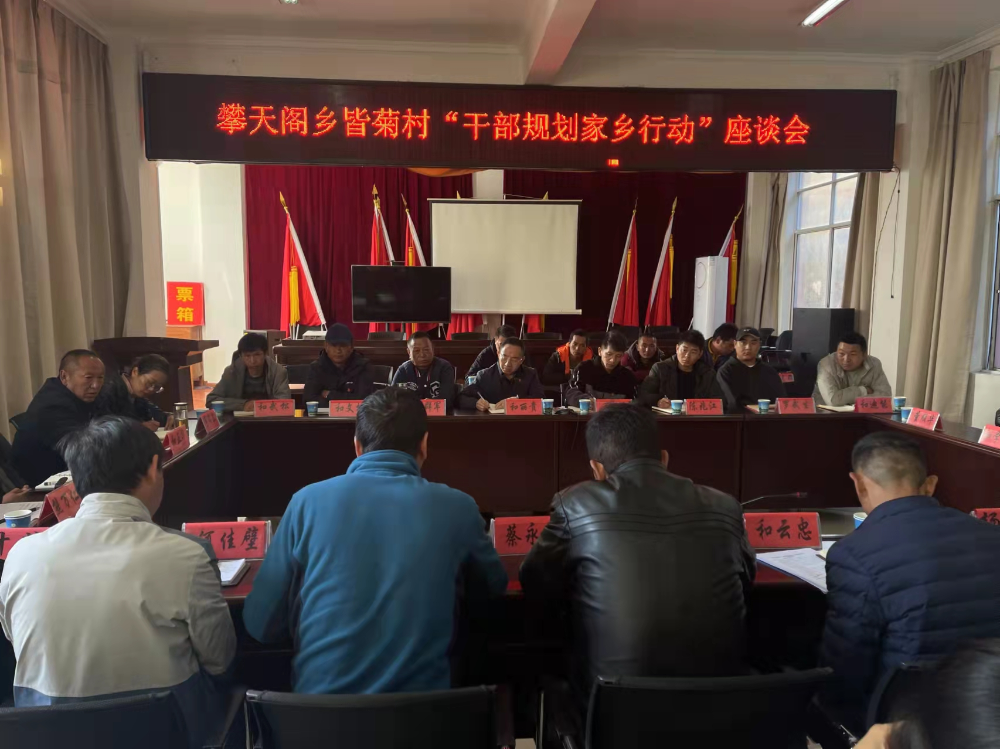 悠悠赤子心,浓浓桑梓情。为巩固拓展脱贫攻坚成果,实现脱贫攻坚与乡村振兴有效衔接,全面提升村庄规划编制水平,建设美丽宜人、业兴人和的社会主义新农村,推动党史学习教育“我为群众办实事”实践活动走深走实。11月10日上午,云南省供销联合社党组书记兼主任和丽贵同志到攀天阁乡皆菊村召开“干部规划家乡行动”座谈会,县委常委、组织部长蔡永鑫、县文旅局、县自然资源局、乡领导班子成员、皆菊村“干部规划家乡行动”行政村规划编制组成员,皆菊村“两委”及部分村民代表等共计30余人齐聚一堂、共话乡音、共叙乡情,共谋家乡发展新愿景。