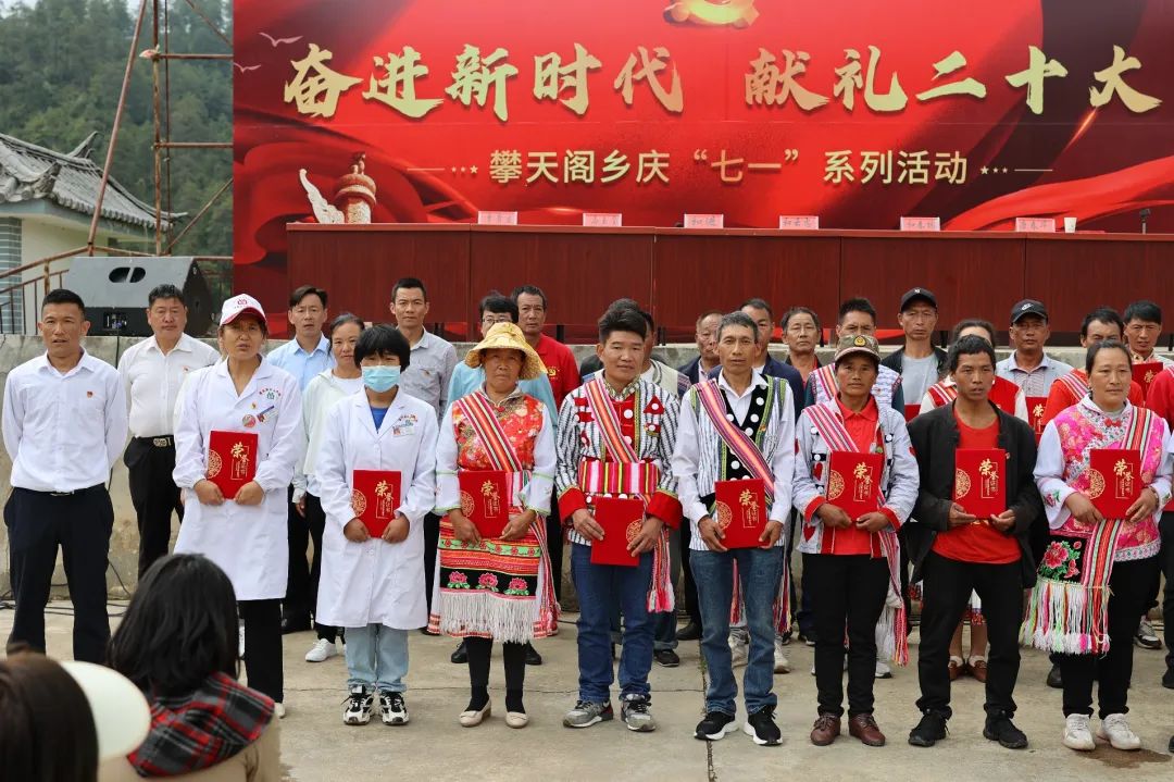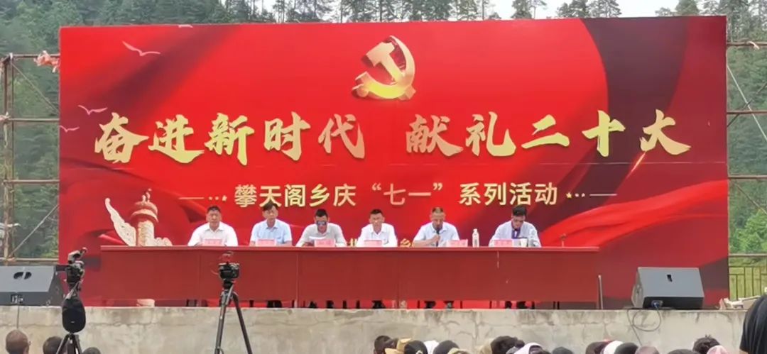 为庆祝中国共产党成立101周年,进一步增强基层党组织的组织力、凝聚力和战斗力,团结带领广大干部群众开拓进取、奋发有为,凝聚创建美丽、和谐、幸福攀天阁的正能量,以优异成绩迎接党的二十大胜利召开。7月11日,攀天阁乡组织开展“奋进新时代献礼二十大”系列主题活动,各村两委及党员群众代表、受表彰优秀党员、先进基层党组织代表、全乡干部职工,乡直支部共300余人参加活动。