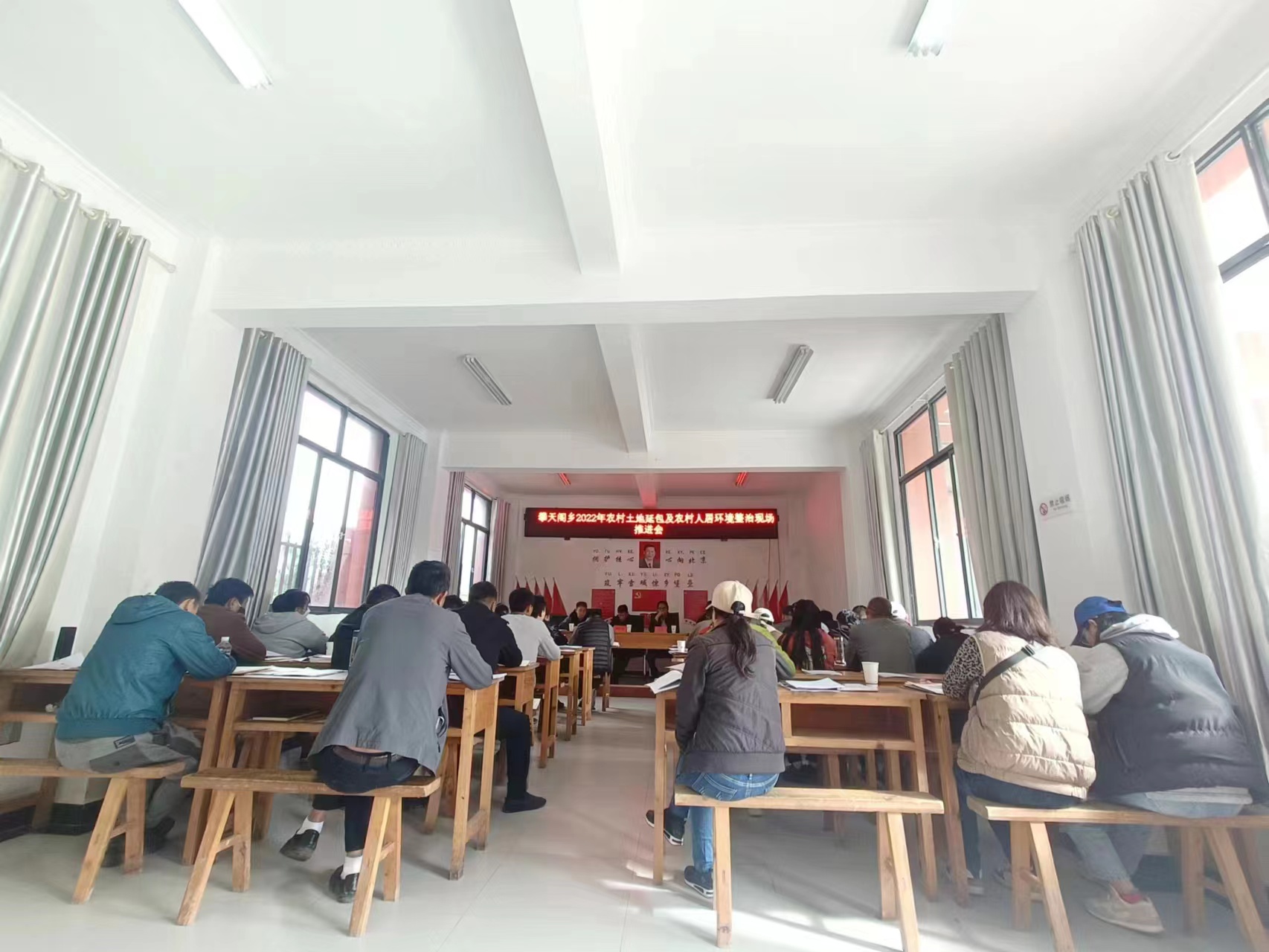 为精准高效做好土地延包及人居环境整治工作,高位推动工作我乡土地延包及人居环境整治工作再上一个台阶。近期,攀天阁乡在岔枝洛村召开了攀天阁乡2022年农村土地延包及农村人居环境整治现场推进会议,县延包办领导及业务专家、乡包村领导班子、乡下派工作队员、各村“两委”、驻村工作队长,乡土地延包、人居办业务人员参会。