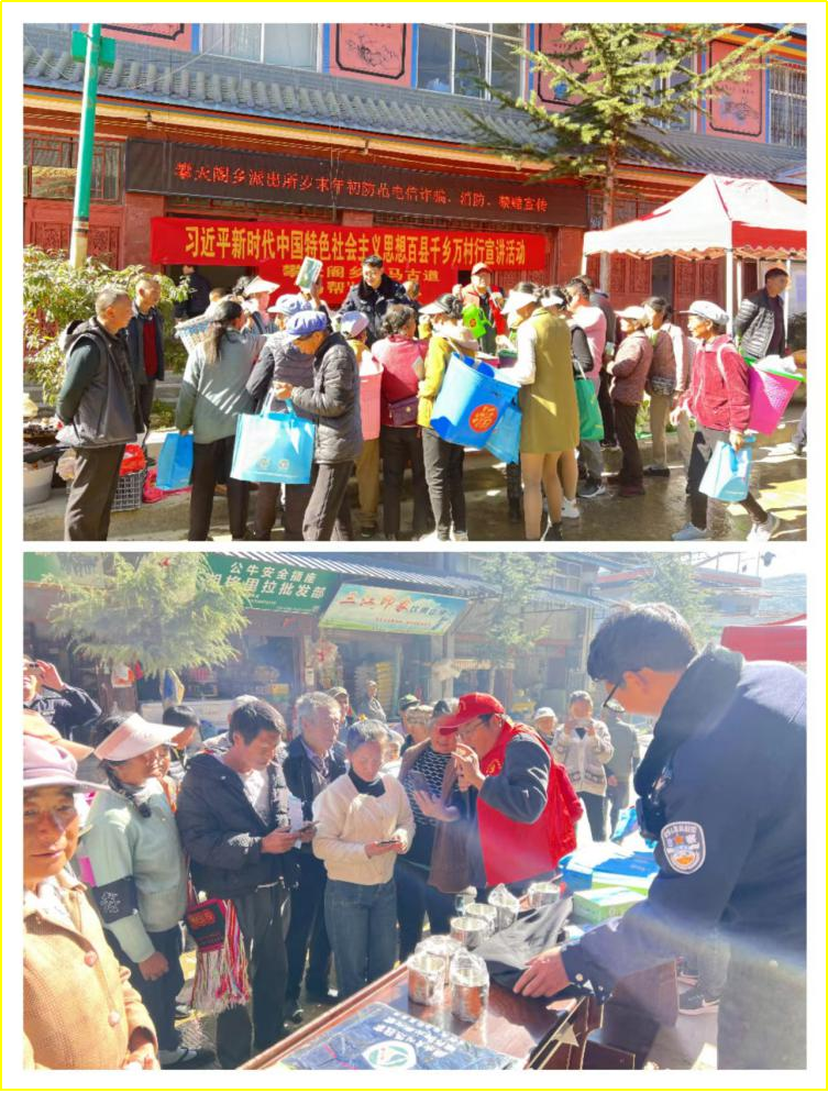 在阵阵掌声中小品表演落下帷幕,紧接着今天宣讲的重头戏登台。宣讲队长阿旺开始了他的精彩演讲,他“声嘶力竭”的向群众进行政策宣传和讲解,医保政策、养老保险政策、土地政策、民族政策、妇女儿童权益保护、护林防火、猪瘟防控、科技科普如数家珍、毫不怯场,政策解释到位、群众也听得明白。宣讲中途他还当起了“检查员”,对在场群众的政策了解和执行情况进行了问答和抽查 ,并检查他们的手机有没有安装和实名认证国家反诈中心APP,微信小程序上有没有使用“金钟罩”,答对和安装使用的群众都得到了不锈钢水杯、餐巾纸、围裙等小奖励。在歌曲演唱《移风易俗》中,“马帮”宣讲队圆满完成今天的任务,在欢乐和热烈的氛围中讲透了政策,把政策讲进了群众的心里。