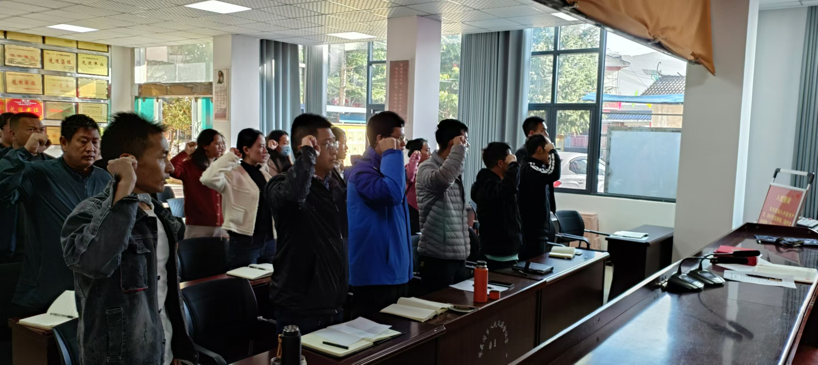 清河开始前,攀天阁乡机关支部、青年人才支部党员在乡政府会议室开展主题党日常规动作。由陈卫松、浩丽华同志领学《习近平总书记关于党纪学习教育的重要指示精神》、《习近平总书记在国家勋章和国家荣誉称号颁授仪式上的讲话精神》。全体党员重温入党誓词、现场交纳党费、集体诵读《中国共产党章程》第七章,并为和莉花同志过政治生日。