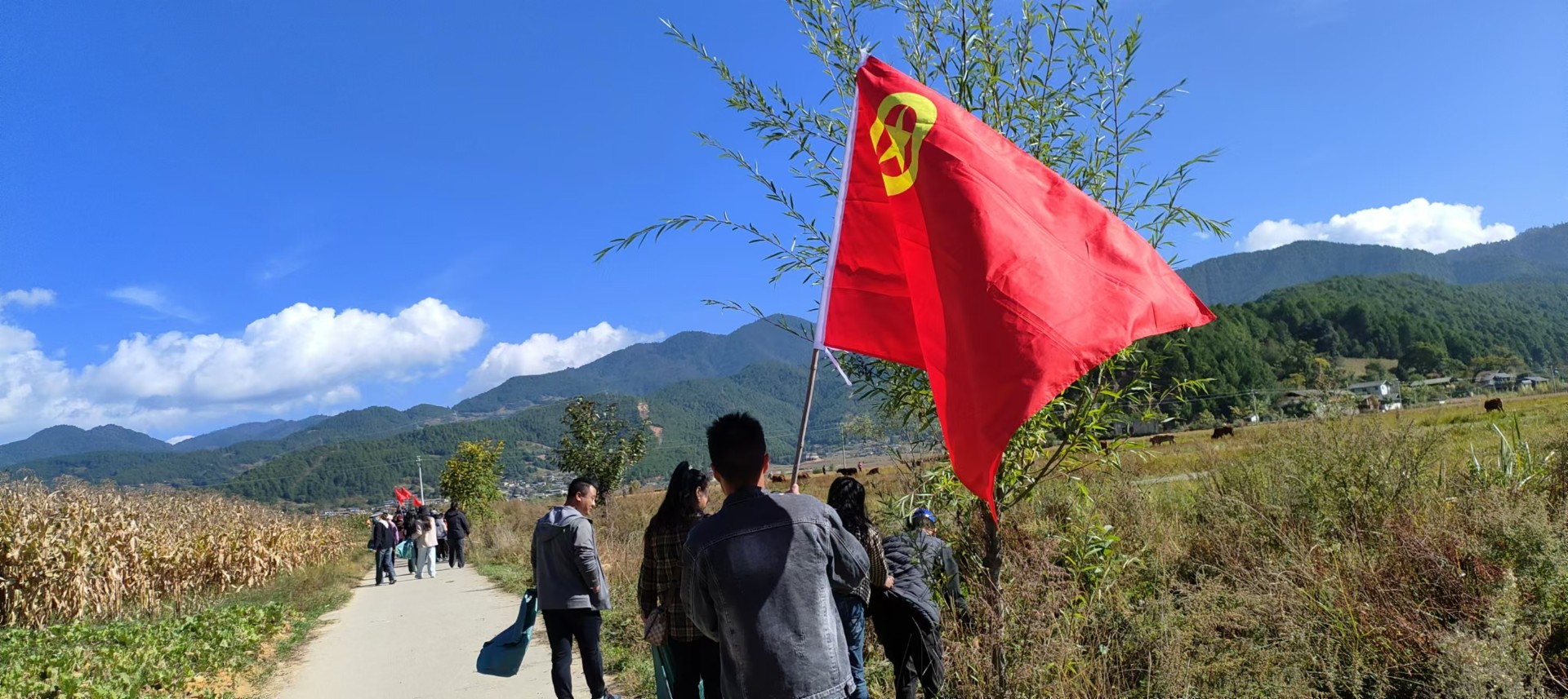 会议结束后党员、团员一起到攀天阁乡中心完小与学生们一同参加升国旗仪式。