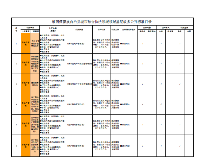 维西傈僳族自治县城市综合执法领域领域基层政务公开标准目录