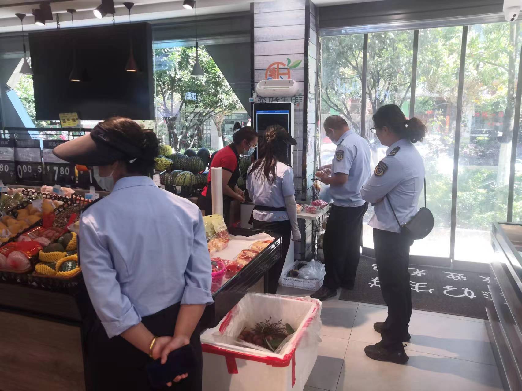 6月24日,我局共出动执法人员16人次,检查农贸市场2个、蔬菜水果摊肉品摊等经营户17家、食品经营户23家、商超1家、百货用品9家,联合消防队、应急局检查液化气使用餐饮经营店7家。检查过程中,检查人员对经营者进行食品安全、燃气使用安全知识宣传教育,督促其切实履行食品安全、消防安全主体责任,按照有关法律法规要求规范经营,禁止出现严重夸大、虚假宣传和误导消费者的违法行为,督促其严格落实食品安全主体责任。有力维护了端午节期间全县市场经营秩序安全稳定。