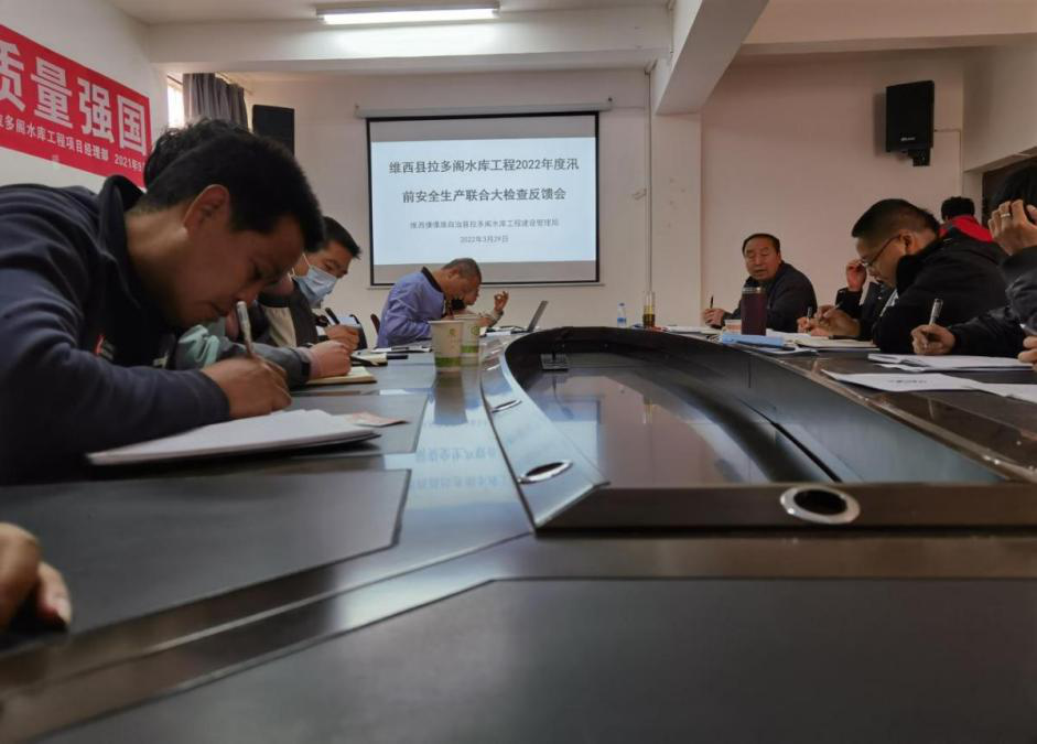 随着汛期的临近,为确保各项防汛准备工作落实到位,2022年3月29日,维西县拉多阁水库建设管理局牵头联合各参建单位开展汛前安全生产大检查,主要检查拉多阁水库渠道枢纽工程、大坝枢纽工程、弃渣场及风化料场安全生产情况。