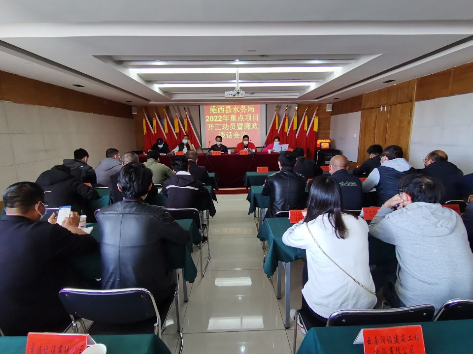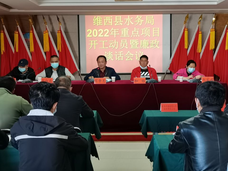 为了加快推进维西县2022年水利项目建设,提高工程建设项目参建方及干部职工廉政意识。2022年4月12日,维西县水务局组织召开了2022年重点项目开工动员暨廉政谈话会议。会议由水务局段红超副局长主持,全局干部职工及30家参建单位负责人参加会议。