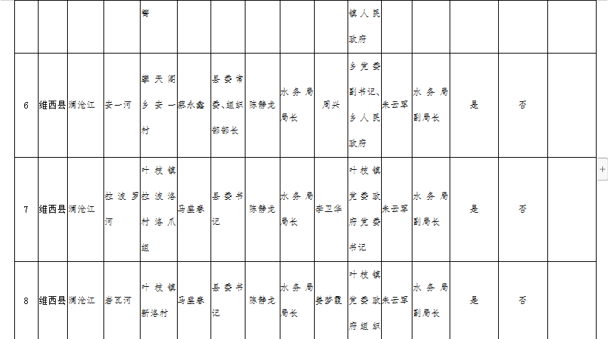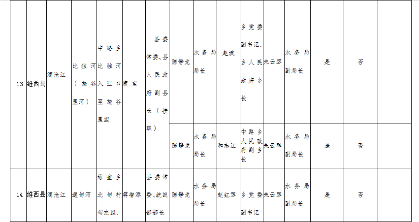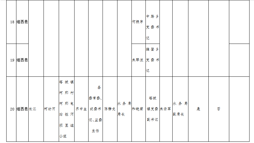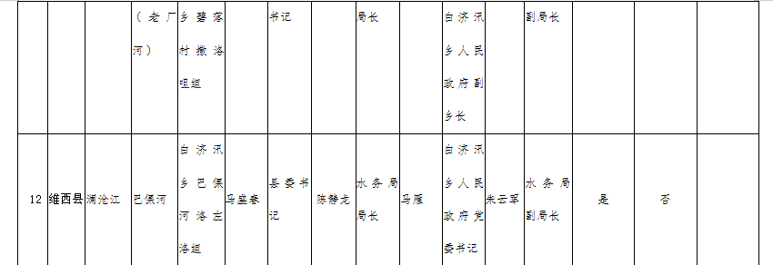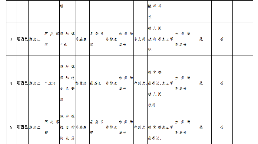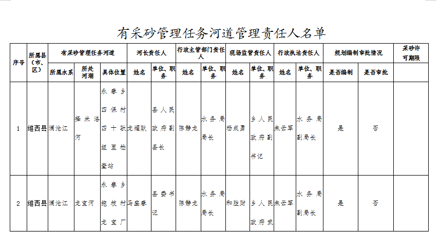 根据《云南省水利厅关于加强春节、冬奥会和全国两会期间河道采砂管理工作的通知》等文件要求,为切实维护县域内河势稳定,保障防洪、水生态环境安全,确保我县河道采砂管理秩序稳定可控,结合我县实际,经研究,现将维西县有采砂管理任务的河道“四个责任人”公告如下: