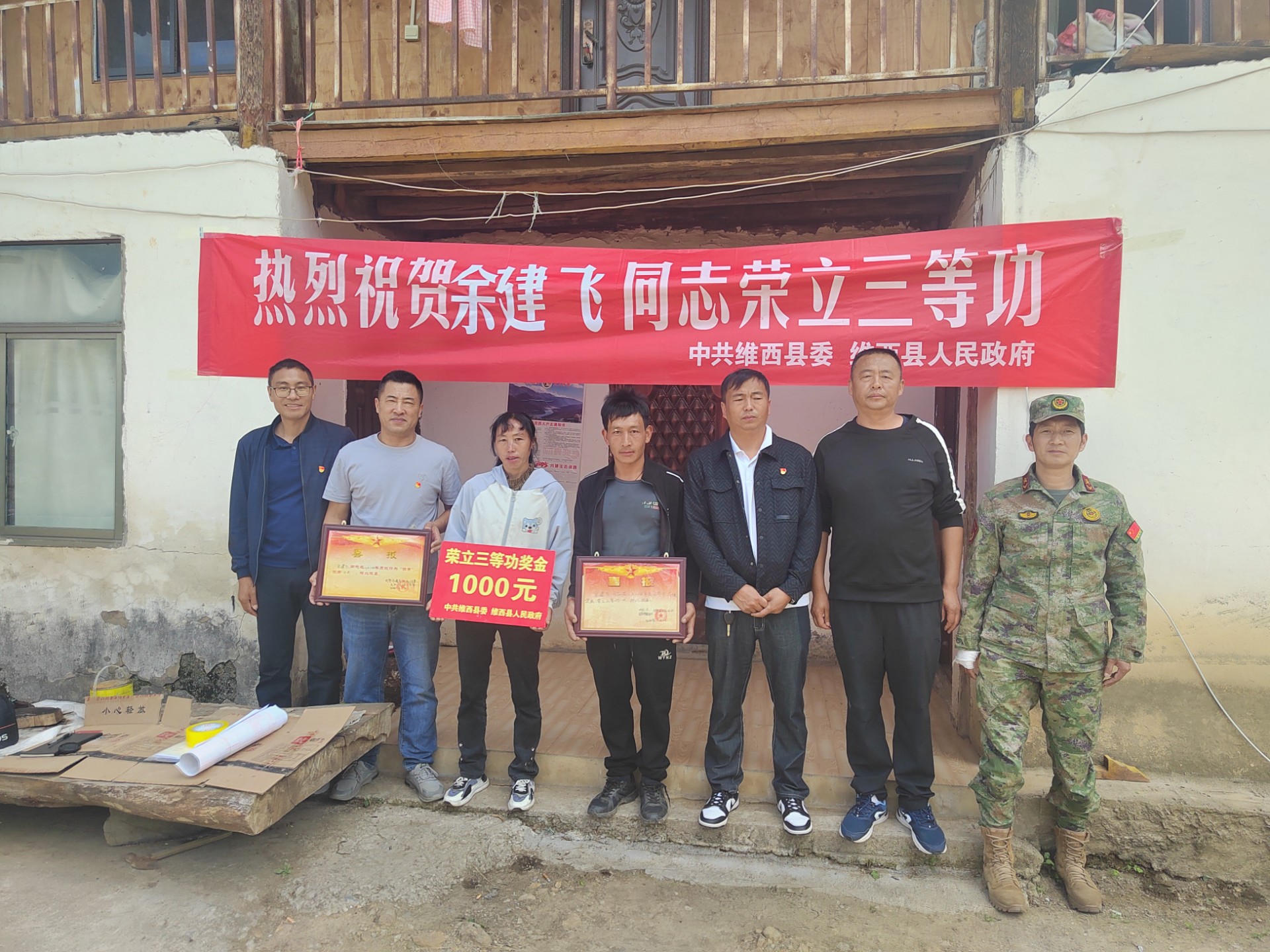 近日,维西县人武部和维西县退役军人事务局联合乡(镇)、村级相关领导为维西籍立功受奖的现役军人家庭送立功喜报、悬挂“光荣牌”到家活动。在送立功喜报到家过程中,军地领导把立功喜报、奖励金送到军属手上,并与立功受奖军人家属开展座谈交流,详细了解家庭生产生活等情况。一枚枚军功章、一张张立功喜报,承载着立功人员精武强军、立志献身国防的拼搏精神。军地联合送立功喜报到家,既是对现役军人献身军营建功立业的褒奖,也是对军人家属在背后默默付出的充分肯定和感谢。