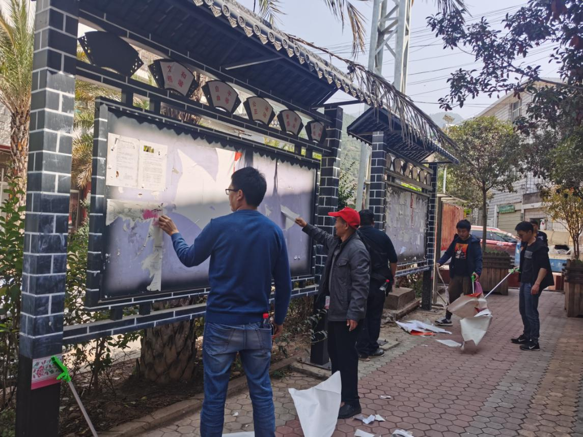 第二小组为乡政府全体职工,负责街面清扫、清理小广告、检查街道洗手台出水情况及设施配备情况。工作人员个个奋力争先,不怕脏、不怕累,清理绿化带、建筑工地积水,疏通街边沟壑,认真把长期无人清理的墙面、死角杂物等垃圾清理运走。