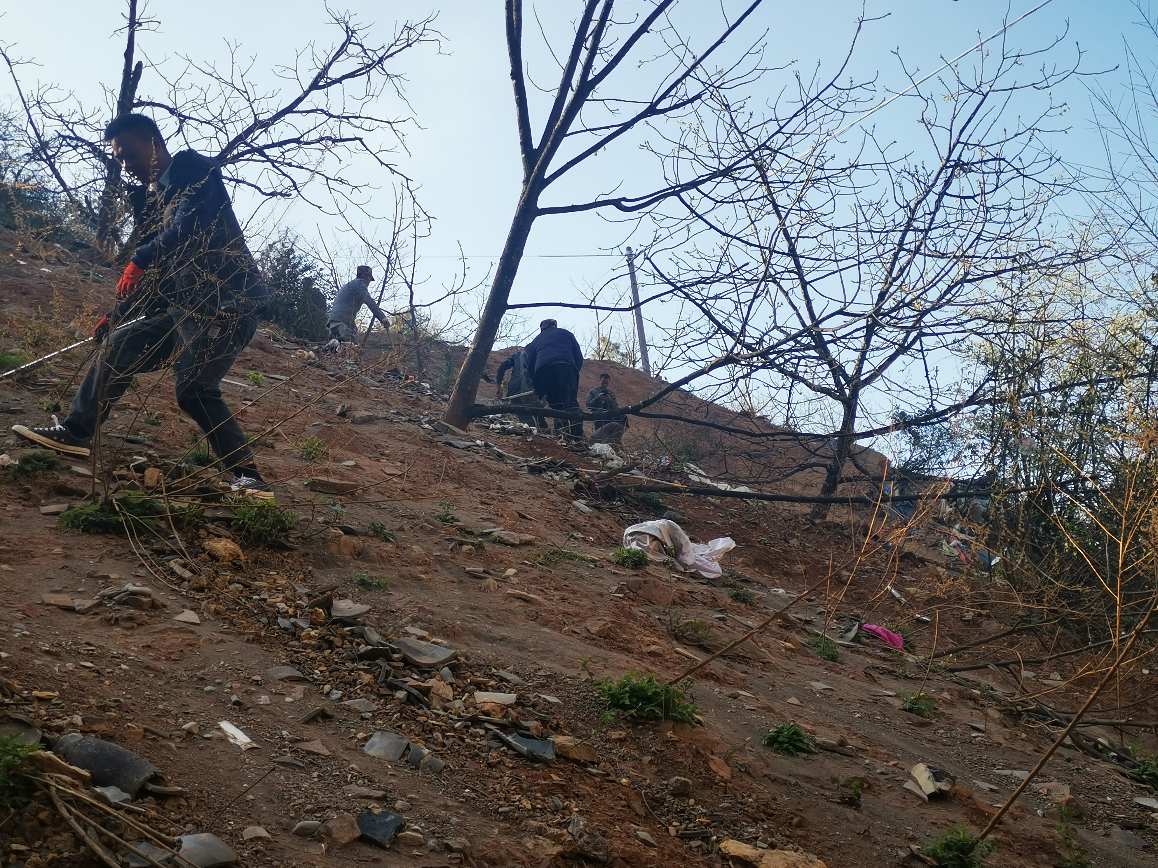 卫生打扫期间,村两委班子成员、全体驻村工作队员、村民分成五组,有组织、有秩序地开展爱国卫生运动。北甸自然村四个村民小组每个村民小组抽三名建档立卡户家庭成员与村两委、驻村工作队员组成一个组一起清理自然村边垃圾,其余四个村民小组各组负责打扫各组卫生区域。从打扫路面尘土到清理路边垃圾,再到清理小树林中的塑料袋、纸片、塑料瓶,不放过任何死角。