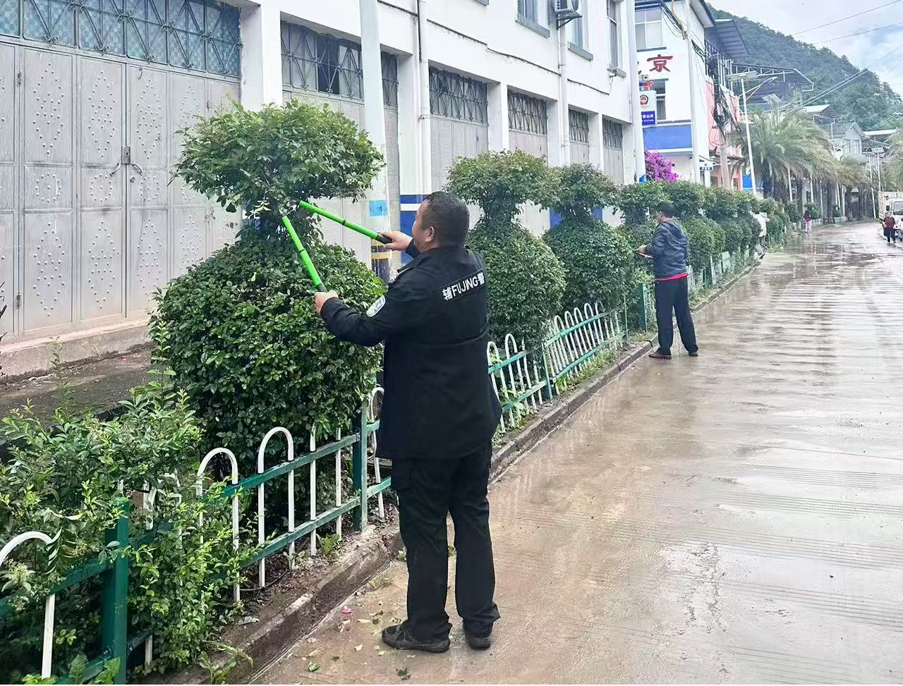 躬行实践显担当,美化家园服务为民.理论学习结束后,支部党员迅速将学习成果转化为服务群众的实际行动。全体党员拿起工具,化身“绿色卫士”,对维登街道主干道两侧的绿化带进行了集中修剪与清理。大家分工协作,干劲十足,仔细清除杂草、修剪枝叶、清运垃圾。此次义务劳动不仅美化了街道环境,更在服务中践行了党员的责任担当,拉近了党群距离。
