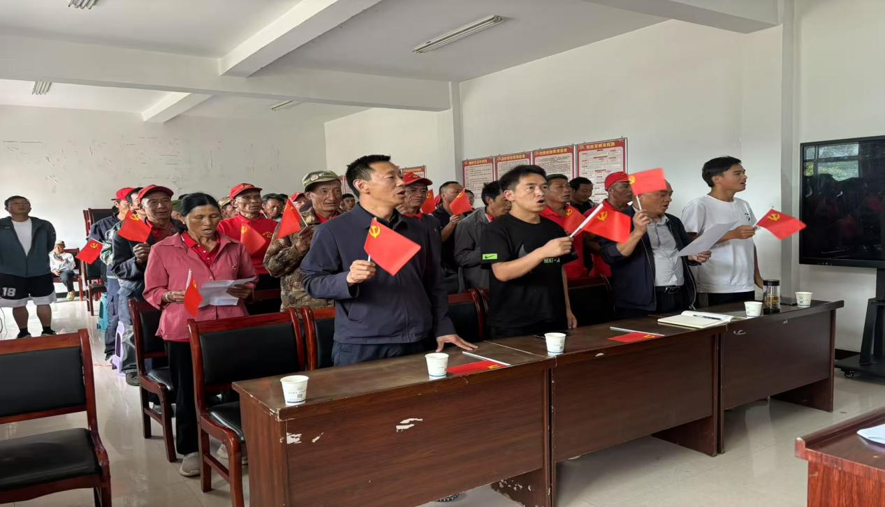 活动在庄严的国歌声中拉开序幕。首先由过政治生日代表汉文生交流发言,他表示,过去一年里,他与其他党员一道,为村子发展做出了一些贡献,但与此同时,也需要大家珍惜荣誉、再接再厉,继续发挥先锋模范作用,为箐头村的建设再立新功。