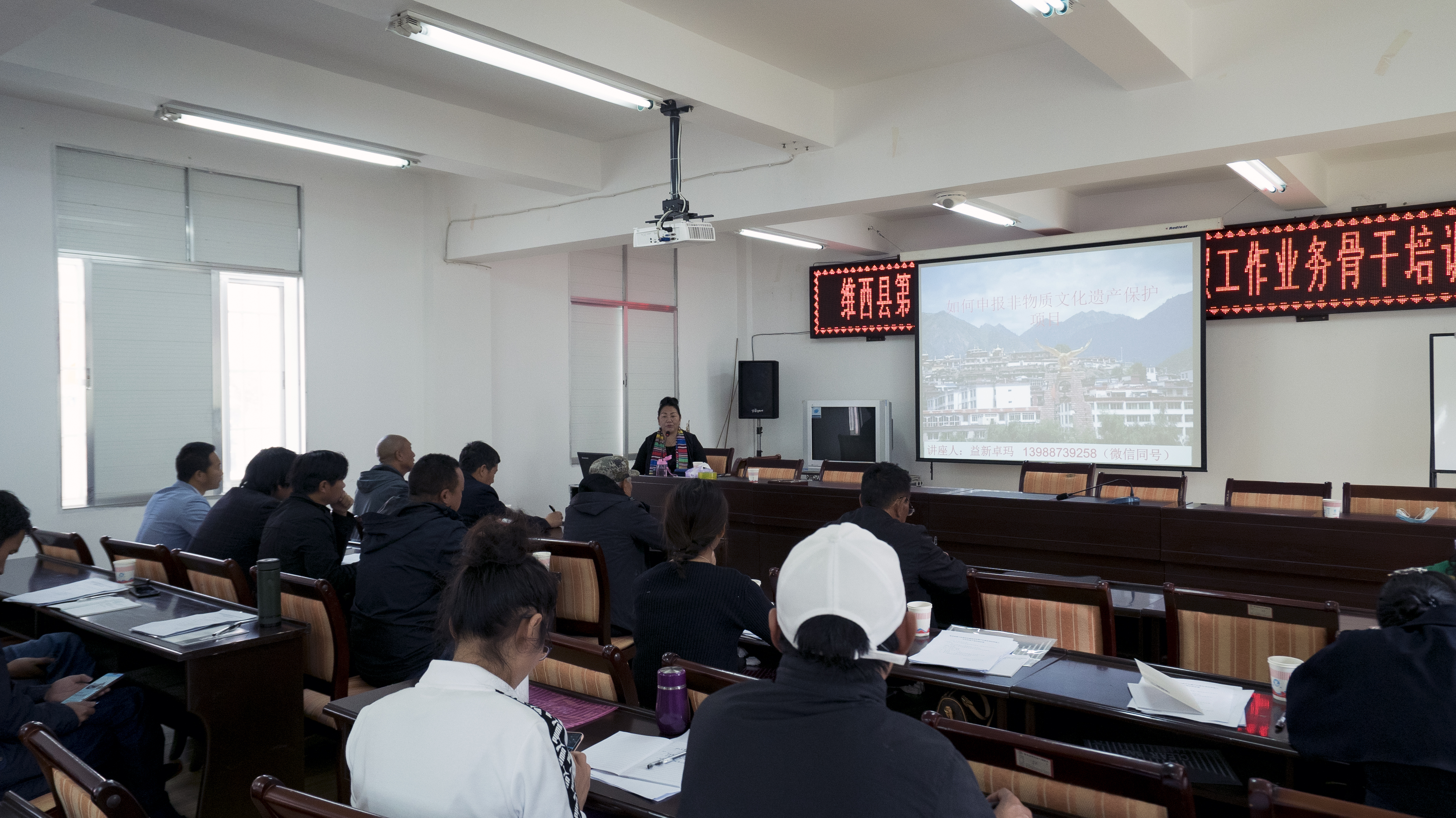 在培训会上,州非遗中心阿新老师用PPT的方式对项目申报所有工作流程进行了详细讲解,并对各乡镇文化站提出的问题作一一解答。她指出:做好县级非物质文化遗产代表性项目推荐申报工作具有基础性作用,事关非物质文化遗产保护事业长远发展,各级部门要以对历史和事业负责的责任感和使命感,认真做好基层推荐申报各项工作。