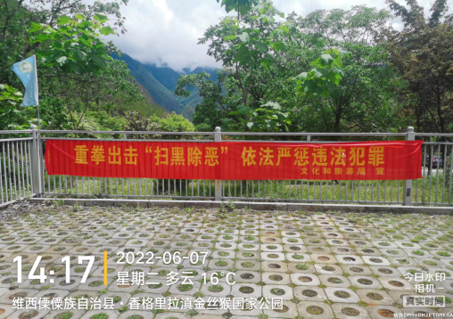 2022年6月7日,维西县文化和旅游局在塔城滇金丝猴国家公园开展行业领域扫黑除恶常态化工作宣传培训会,由塔城镇派出所民警对文化旅游行业的扫黑除恶常态化工作要点做宣传讲解,参加培训的有维西县城内文娱经营场所负责人、塔城精品民宿酒店及文娱经营场所负责人及滇金丝猴国家公园全体工作人员。会上对《中华人民共和国反有组织犯罪法释义与适用》立法背景和重要意义等章节进行集中学习。