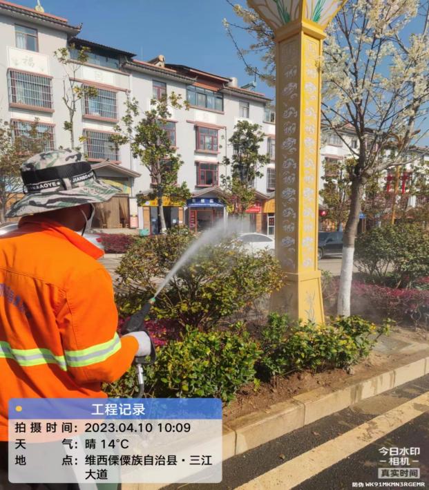 本周对行政中心、红杉路、园林局、县医院旁公园、兴维大道二中线、滨河路、客运站片区、念萨街、万人广场、顺城北路、永宁路、雪龙西路、三江大道、碧罗路、三江广场、东大街、三角公园、噶萨街等地进行打杀草药、洒水车浇水、修剪大树、施肥、滴灌放水等。共计用工42人,清理枯枝落叶15车,用水20车。