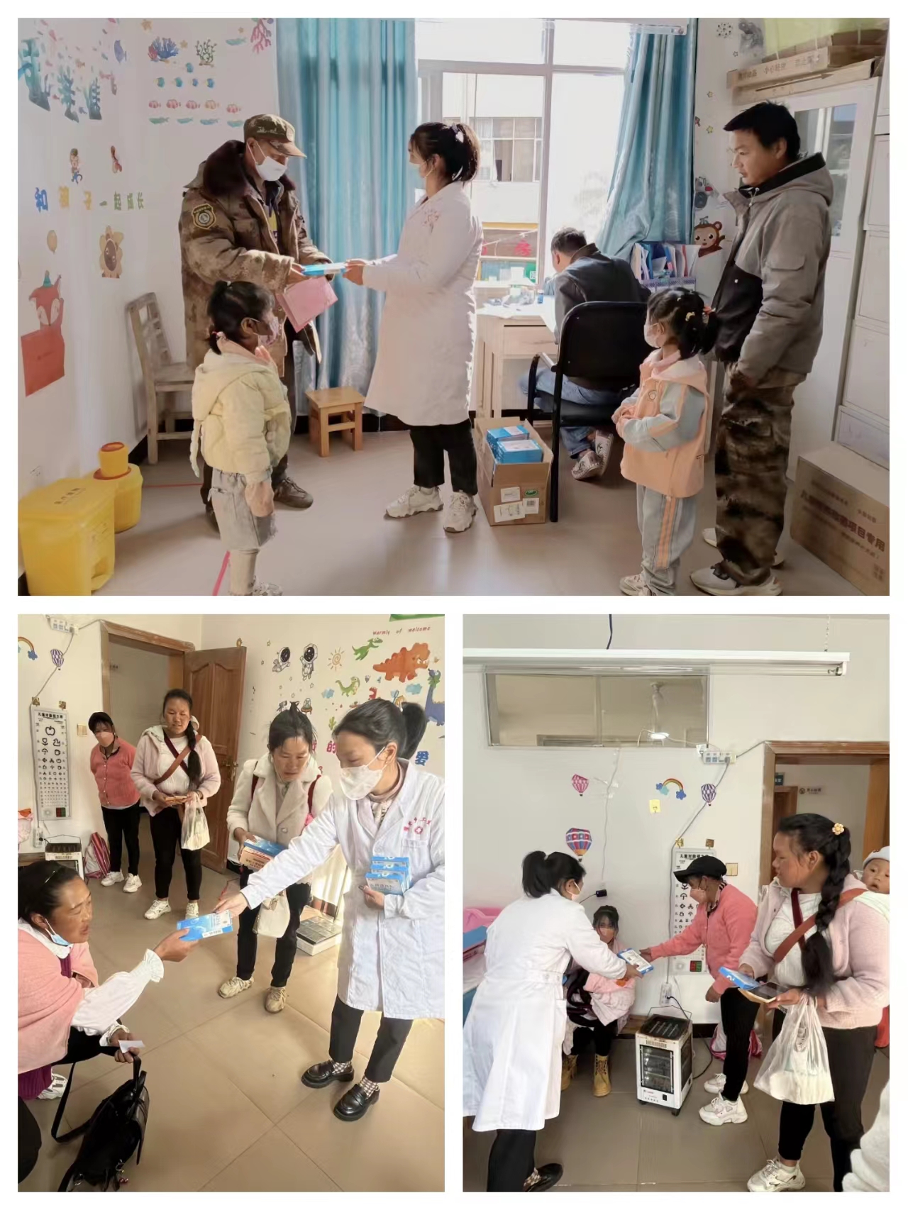 每月6日、7日、8日为我院0-6岁儿童集中体检日,届时儿保员和各村村医将为辖区内9个行政村符合体检年龄段的儿童进行体检,体检结束后,医务人员向前来体检的儿童及家长免费发放了云南白药集团捐赠的药品。