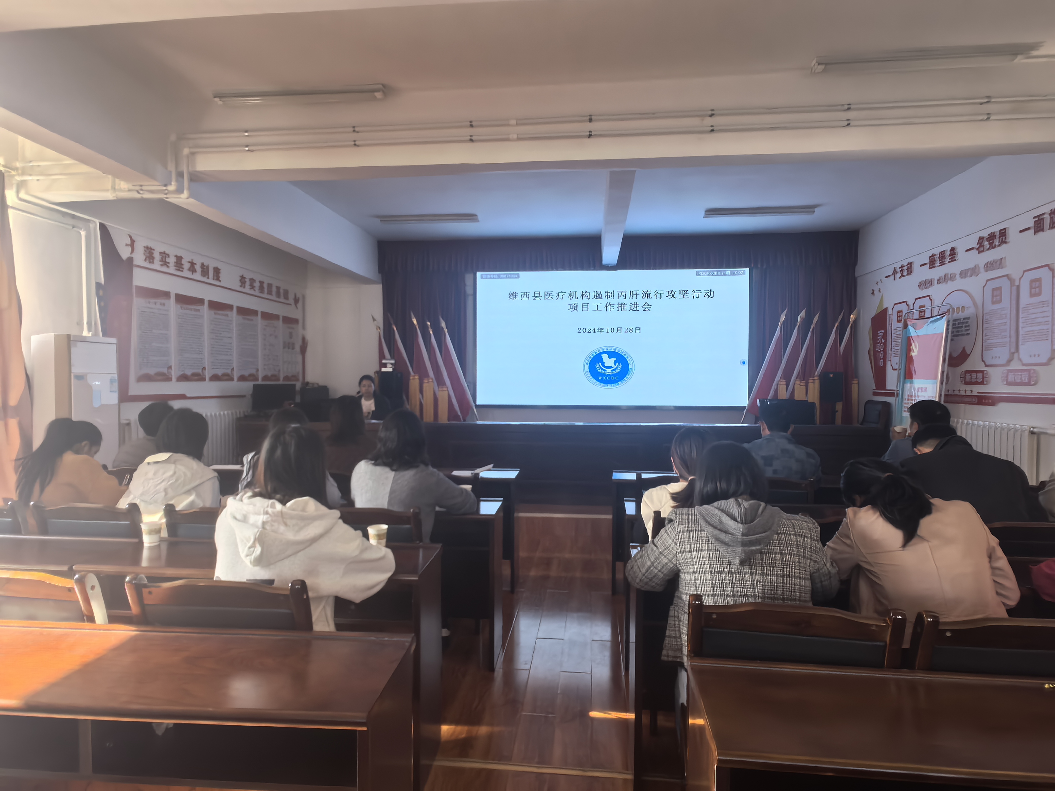为贯彻落实《云南省卫生健康事业高质量发展三年行动计划(2023-2025年》(云办发〔2023〕10号)要求,实施好遏制丙肝流行攻坚行动项目,推进丙肝患者主动检测,最大限度动员丙肝患者入组治疗,维西县卫生健康局于2024年10月28日召开遏制丙肝流行攻坚行动项目工作推进会议,本次会议旨在了解丙肝相关公共卫生危害,明确下一步丙肝防治工作目标与任务,加快推进全县消除丙肝公共卫生危害行动。
