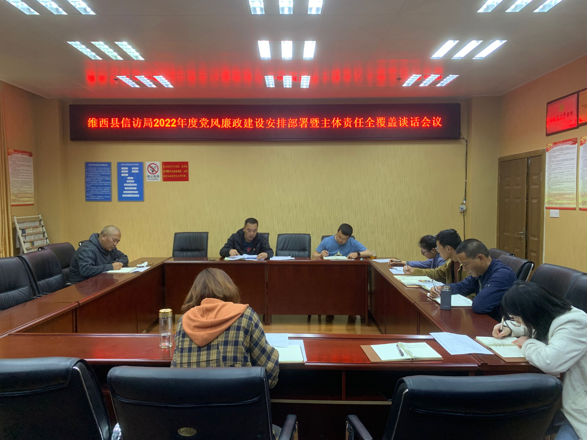 为深入贯彻落实党中央、省委、州委以及县委关于全面从严治党、党风廉政建设和反腐败斗争的要求部署,层层压实全县各级党组织管党治党政治责任,推动全面从严治党向纵深发展。维西县信访局于2022年5月16日组织召开2022年度党风廉政建设安排部署暨主体责任全覆盖谈话会议,本次会议由副局长全冬辉同志主持。