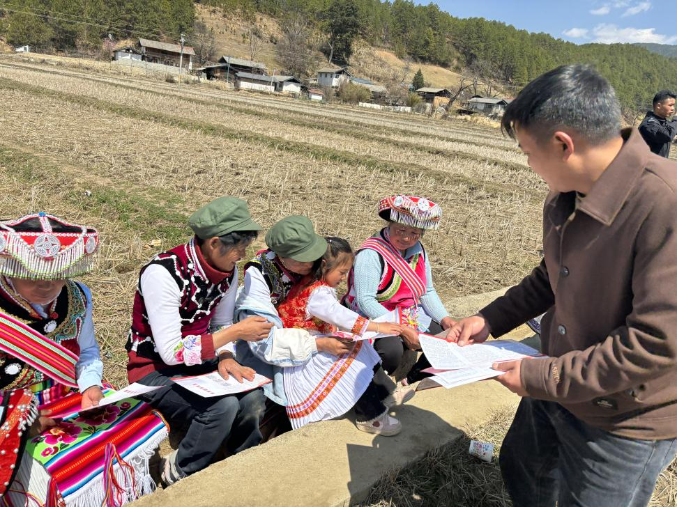 第一批信访局工作人员由信访局局长徐俊带头到皆菊村开展生态环境政策法规宣讲,普及环保知识、传播低碳生产生活理念,提升生态环境意识,共建美丽维西。