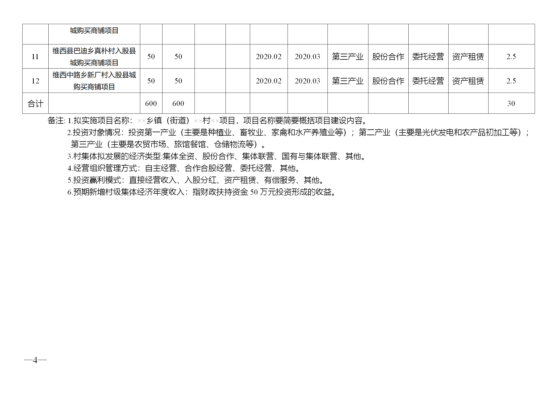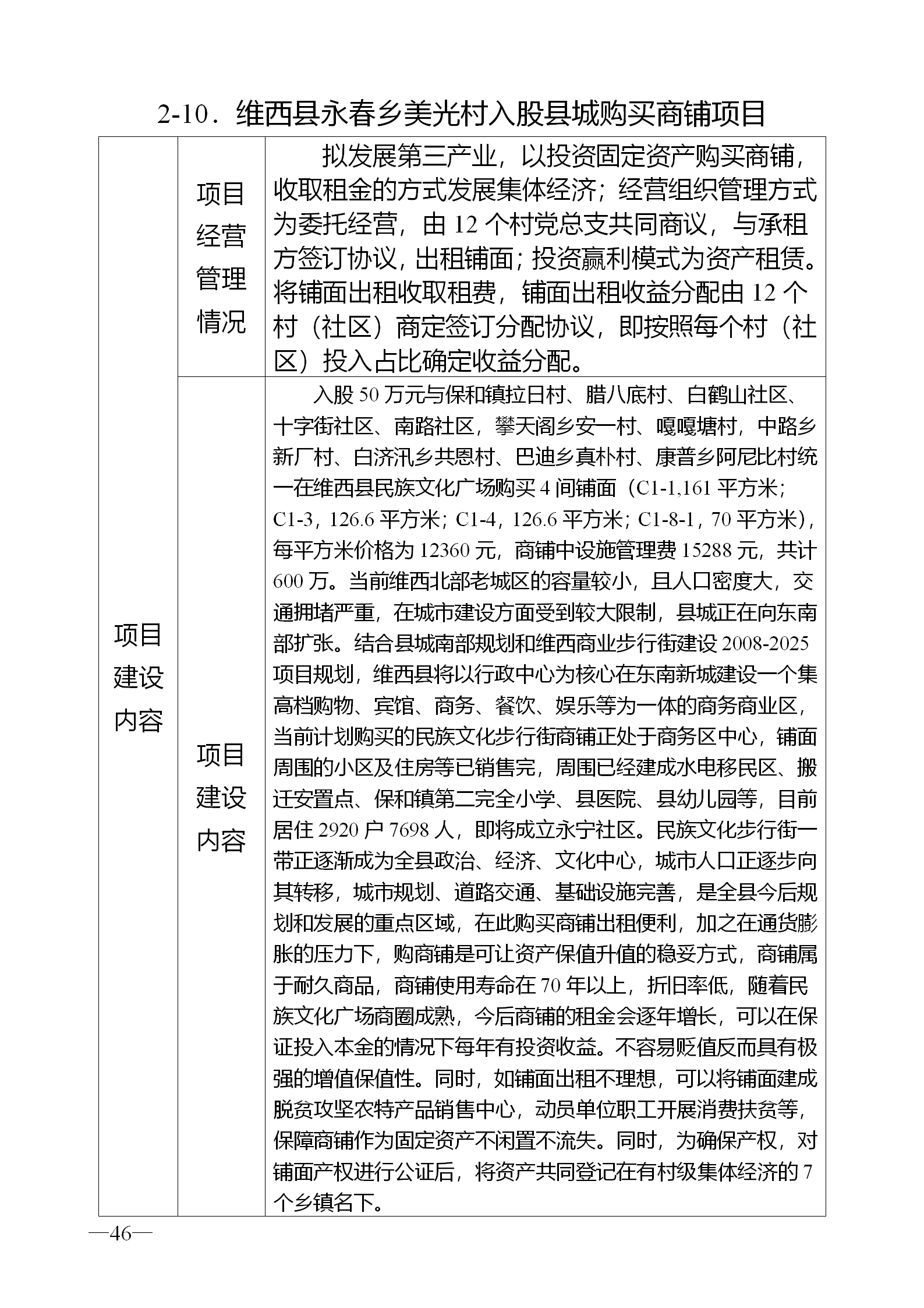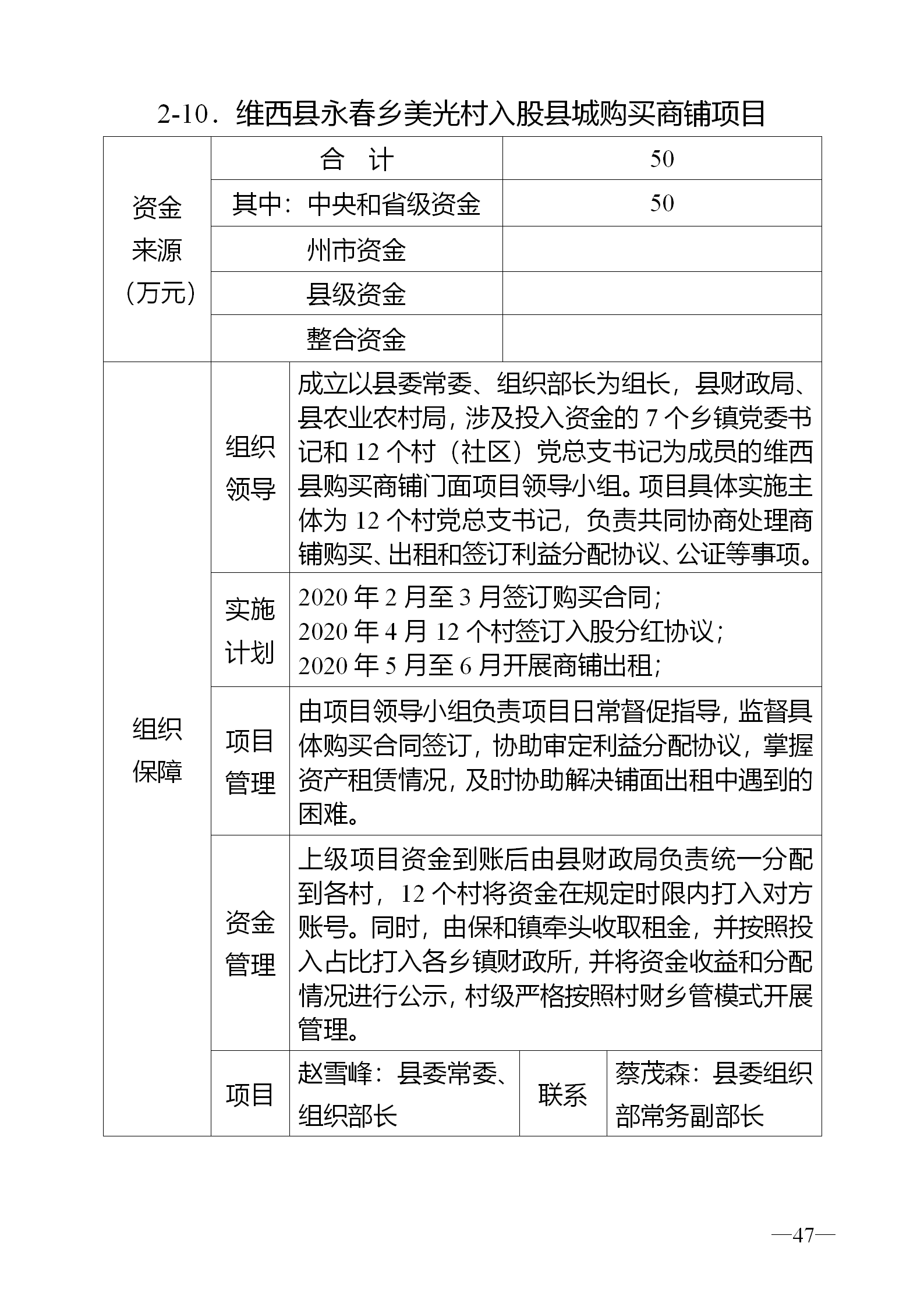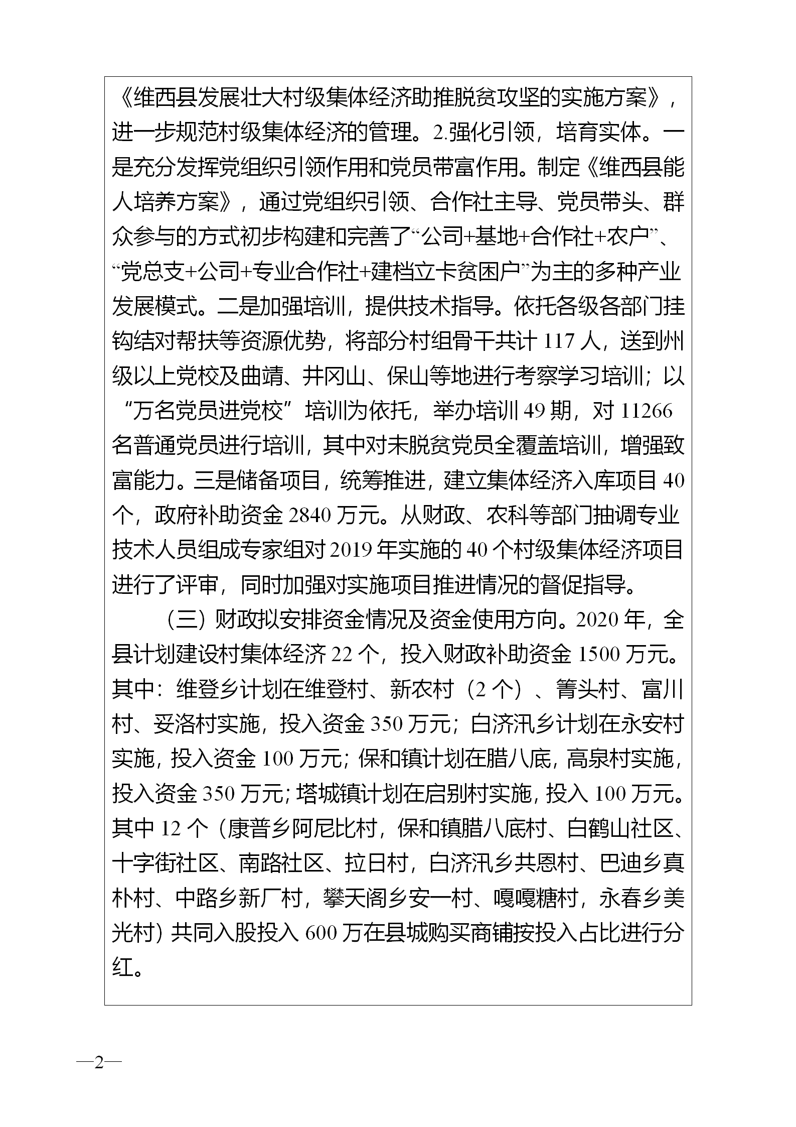 【永春乡】维西县2020年扶持壮大村级集体经济 项目实施方案